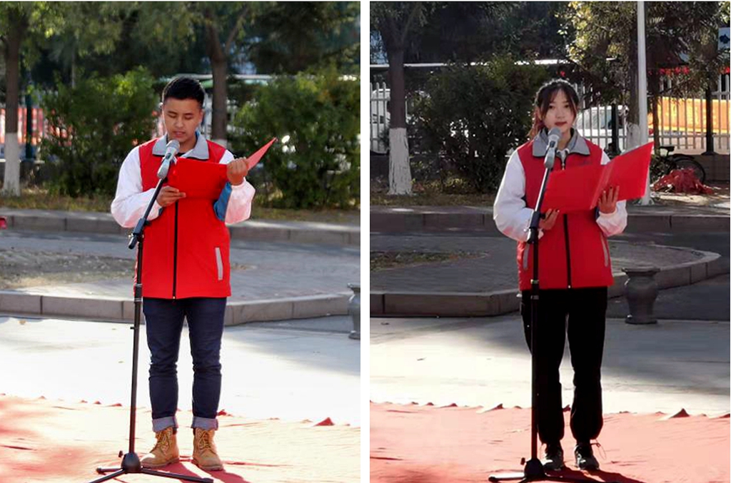 儀式上,青年志愿者代表許銳宣讀了“護(hù)河志愿服務(wù)行動(dòng)倡議書”,青年志愿者代表耿文靜向全校師生發(fā)出了“垃圾分類我先行倡議”。
