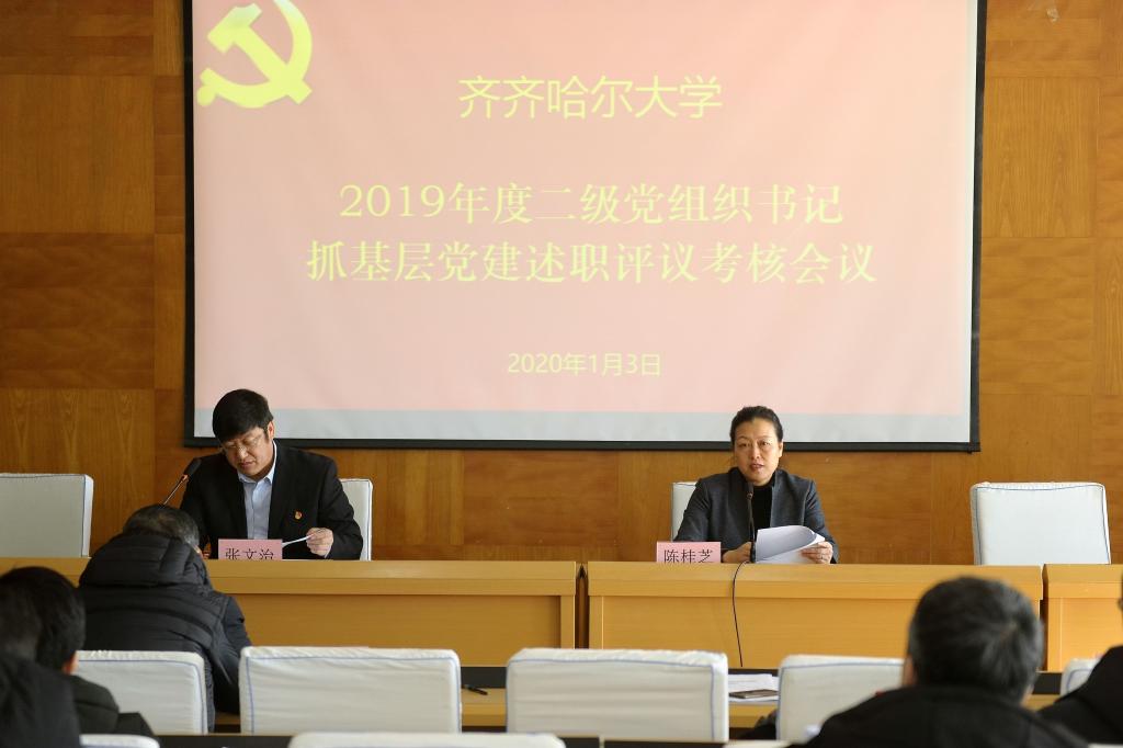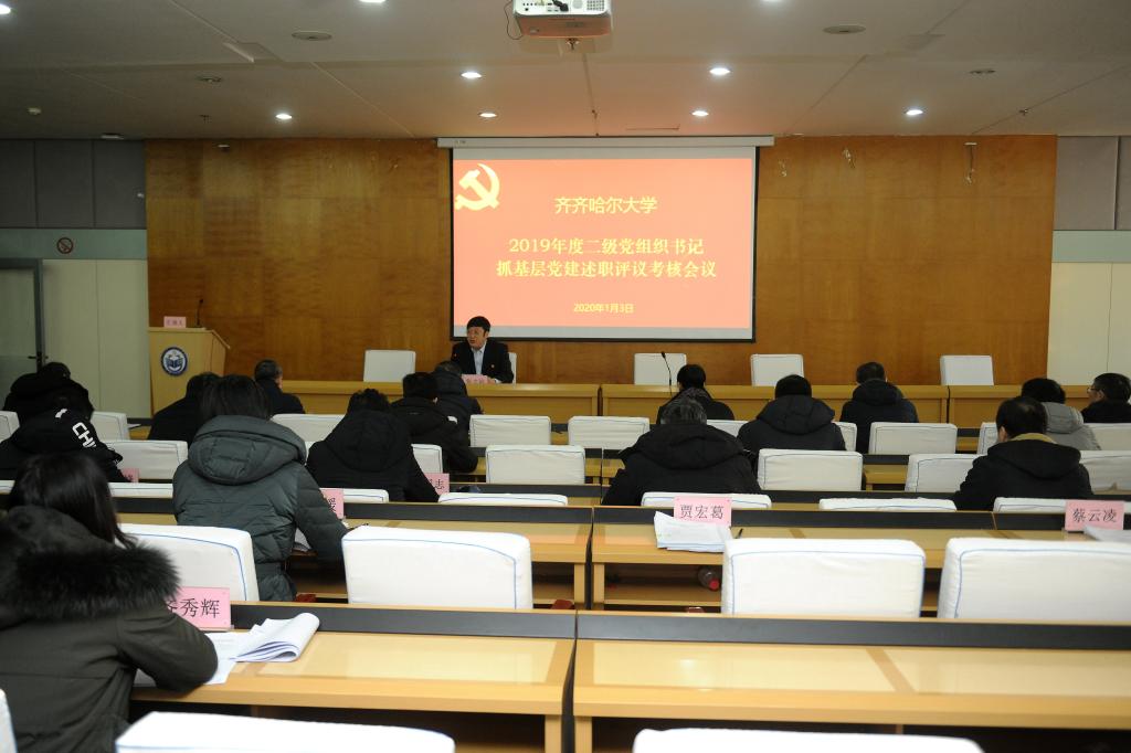根據(jù)《中共黑龍江省委教育工作委員會(huì)關(guān)于做好2019年度高校黨組織書記抓基層黨建述職評(píng)議考核工作的通知》精神,按照學(xué)校黨委《關(guān)于開展2019年度基層黨組織書記抓基層黨建述職評(píng)議考核工作的通知》安排,1月3日上午,學(xué)校在西區(qū)主樓學(xué)術(shù)報(bào)告廳召開了二級(jí)黨組織書記抓基層黨建述職評(píng)議會(huì)。校黨委書記、校長(zhǎng)陳桂芝與在校校領(lǐng)導(dǎo)出席會(huì)議,部分學(xué)校黨委委員、紀(jì)委委員、“兩代表一委員”和教師代表參加了述職評(píng)議會(huì),會(huì)議由張文治主持。