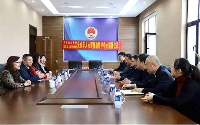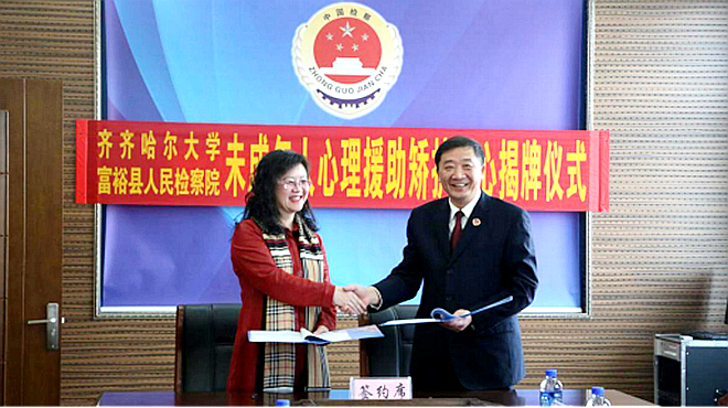 為更好地履行高校服務(wù)社會(huì)職能,預(yù)防青少年違法犯罪,促進(jìn)社會(huì)和諧,幫助未成年人解決成長(zhǎng)中遇到的心理問(wèn)題,拓寬學(xué)生校外實(shí)踐渠道,2019年12月31日上午,我校教師教育學(xué)院與富??h檢察院合作簽約暨“齊齊哈爾大學(xué)教學(xué)實(shí)踐基地”“齊齊哈爾大學(xué)未成年人心理援助矯護(hù)中心”揭牌儀式在富??h人民檢察院五樓會(huì)議室舉行。副校長(zhǎng)李英杰,齊齊哈爾市人民檢察院黨組成員、副檢察長(zhǎng)黃大力,富??h人民檢察院黨組書(shū)記、檢察長(zhǎng)李雪峰等相關(guān)負(fù)責(zé)人出席了簽約儀式,我校教師教育學(xué)院、教務(wù)處等相關(guān)單位負(fù)責(zé)人和教師參加儀式。儀式由富??h人民檢察院黨組成員、副檢察長(zhǎng)付武主持。