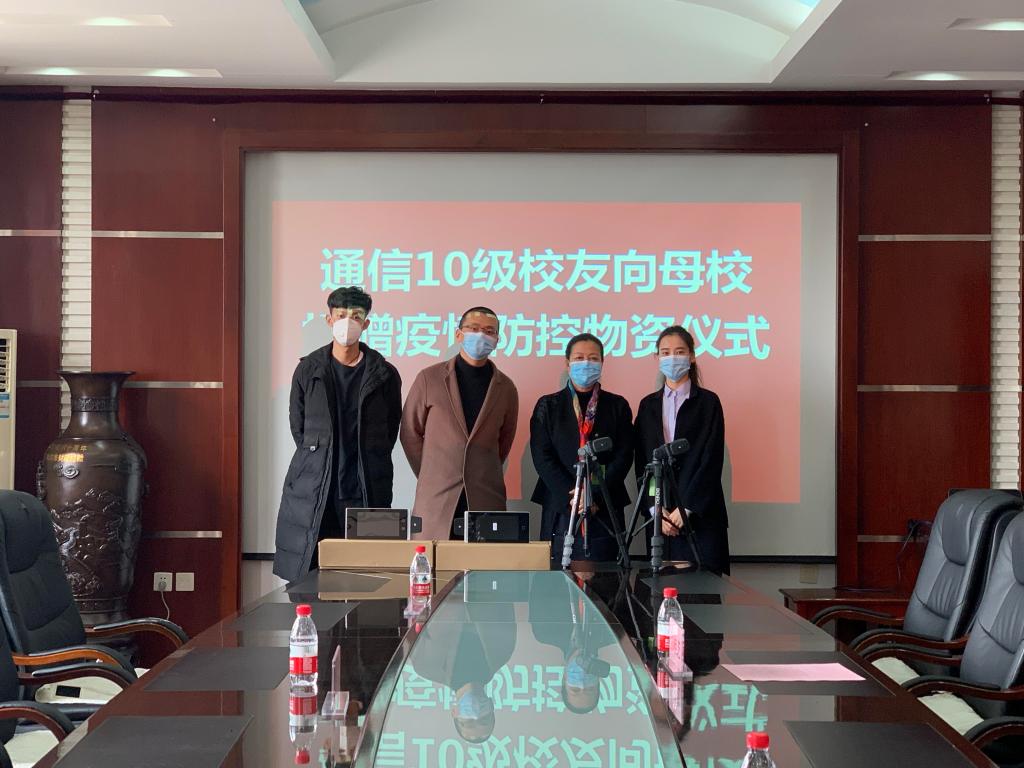 譚東悅在發(fā)言中表示,感恩母校的培養(yǎng)和關(guān)懷,新冠肺炎疫情爆發(fā)以來,母校的疫情防控工作始終牽動著我們的心,在了解到學(xué)校急需防疫物品后,我們將兩套人臉識別紅外測溫儀捐贈給學(xué)校,希望通過捐贈疫情防控設(shè)備,在疫情防控的關(guān)鍵時刻盡一份綿薄之力,與母校同舟共濟(jì),共同抗擊疫情。