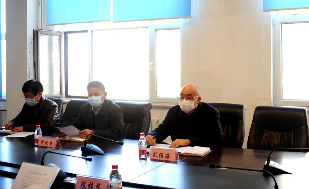 在求實(shí)樓五樓小會(huì)議室,陳桂芝一行聽(tīng)取了附屬中學(xué)關(guān)于疫情防控和高三學(xué)生返校復(fù)學(xué)準(zhǔn)備情況的匯報(bào)。附屬中學(xué)理事長(zhǎng)孔維海匯報(bào)了高三年級(jí)師生基本情況、復(fù)學(xué)準(zhǔn)備情況、存在的問(wèn)題等三個(gè)方面的內(nèi)容,教師教育學(xué)院副院長(zhǎng)、附屬中學(xué)校長(zhǎng)李從舉對(duì)復(fù)學(xué)準(zhǔn)備的具體舉措、相關(guān)預(yù)案進(jìn)行了詳細(xì)介紹。