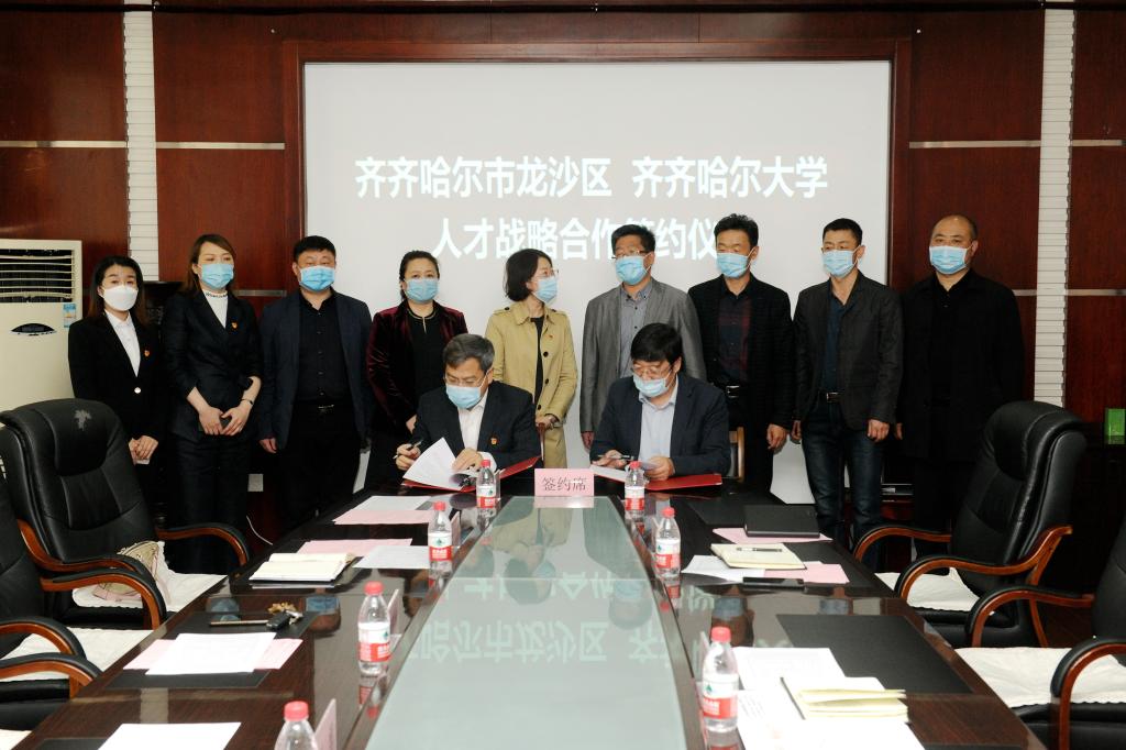 為進(jìn)一步加強(qiáng)校地、校企合作,推動(dòng)做好就業(yè)工作,滿足地方經(jīng)濟(jì)發(fā)展人才需求,本著“整合資源、發(fā)揮優(yōu)勢(shì)、協(xié)同創(chuàng)新、共謀發(fā)展”的原則,經(jīng)協(xié)商,我校與齊齊哈爾市龍沙區(qū)委達(dá)成了人才戰(zhàn)略協(xié)議。5月26日上午,齊齊哈爾大學(xué)與龍沙區(qū)委人才戰(zhàn)略合作協(xié)議簽約儀式在學(xué)校辦公樓504會(huì)議室舉行,校黨委副書記張文治,黨委常委、組織部長(zhǎng)馬文輝,龍沙區(qū)委副書記、統(tǒng)戰(zhàn)部長(zhǎng)劉勇,龍沙區(qū)委常委、組織部長(zhǎng)龐悅秋等出席簽約儀式,學(xué)校招生就業(yè)處、龍沙區(qū)委組織部、教育局、人才服務(wù)中心、中小企業(yè)服務(wù)中心負(fù)責(zé)人參加簽約儀式,儀式由張文治主持。