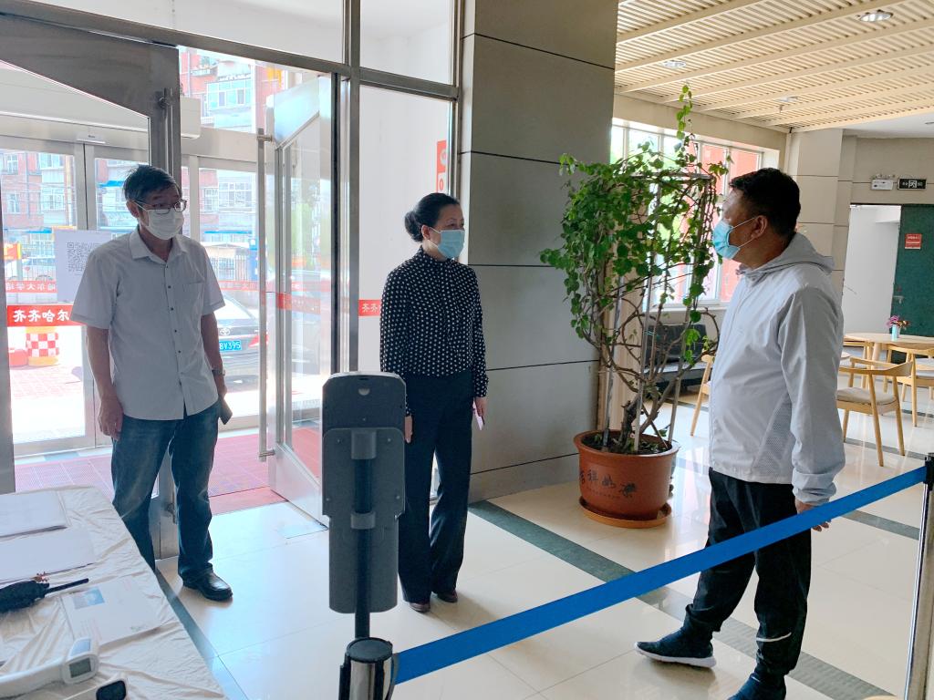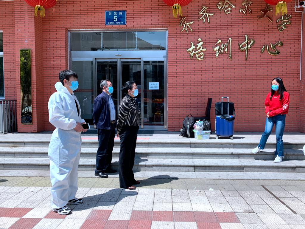 6月7日,學(xué)校迎來2020年春季學(xué)期首批有重點(diǎn)科研任務(wù)的部分研究生返校。當(dāng)天上午,校黨委書記、校長(zhǎng)、校疫情防控領(lǐng)導(dǎo)小組組長(zhǎng)陳桂芝,黨委常委、副校長(zhǎng)、校疫情防控領(lǐng)導(dǎo)小組副組長(zhǎng)張樹軍,黨委常委、副校長(zhǎng)、校疫情防控領(lǐng)導(dǎo)小組副組長(zhǎng)呂厚均在疫情防控領(lǐng)導(dǎo)小組辦公室及相關(guān)部門工作人員陪同下深入校培訓(xùn)中心隔離區(qū)看望慰問了首批返校研究生及一線工作人員,實(shí)地檢查了疫情防控及服務(wù)保障相關(guān)工作。