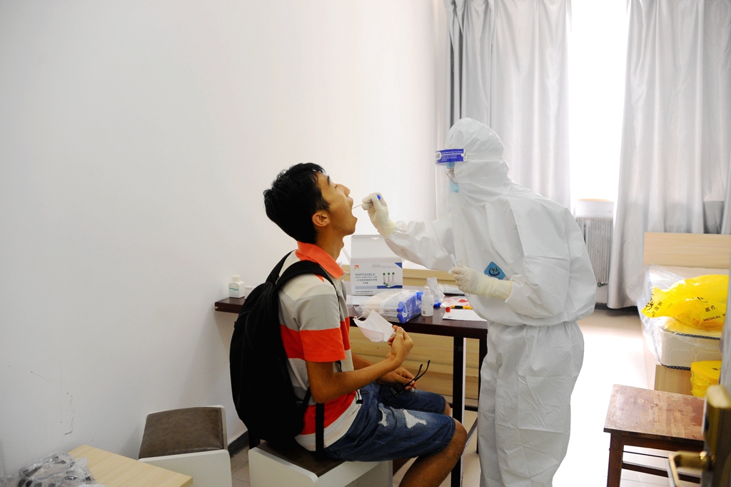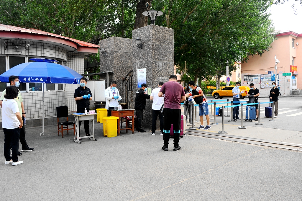 同學(xué)們?cè)趯W(xué)生工作部(學(xué)生處)、校團(tuán)委、招生就業(yè)處、保衛(wèi)處等部門工作人員的引導(dǎo)下有序報(bào)到,嚴(yán)格執(zhí)行進(jìn)校門口“龍江健康碼”“完美校園”掃碼,工作人員為學(xué)生測(cè)溫、對(duì)學(xué)生進(jìn)行手部消毒和行李消殺(對(duì)學(xué)生自駕進(jìn)入校園車輛消毒),各學(xué)院學(xué)生工作干部在校門內(nèi)迎接返校學(xué)生,陪伴學(xué)生到隔離觀察區(qū)樓下,學(xué)生二次掃碼測(cè)溫、登記、審核通過,學(xué)生進(jìn)行核酸檢測(cè)后進(jìn)入房間等程序。