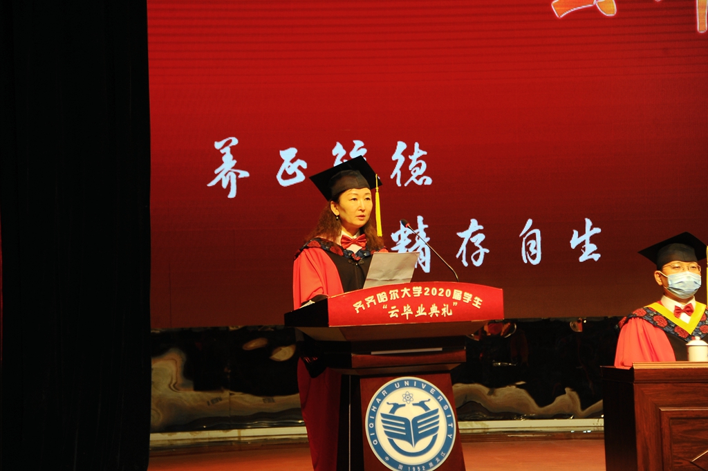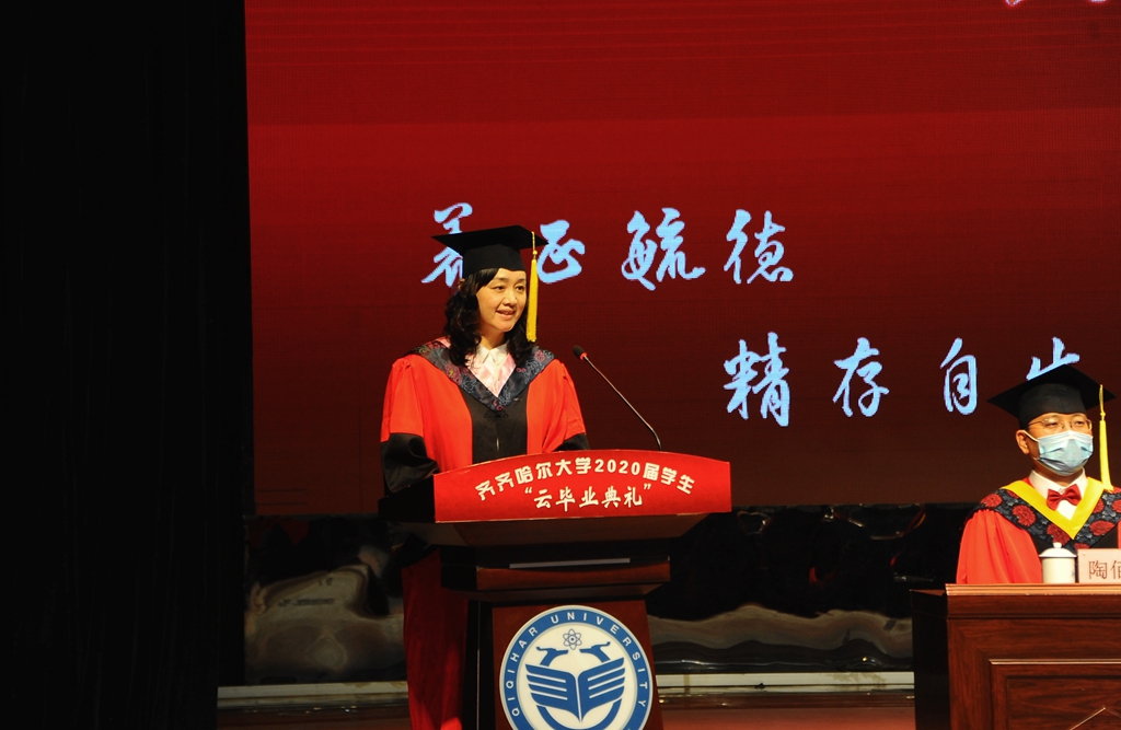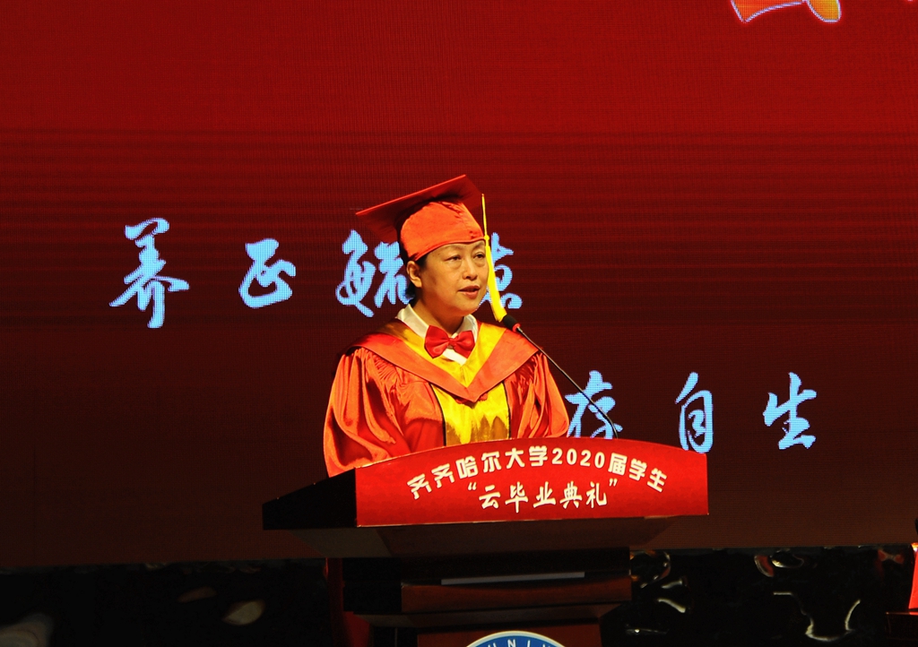 陳桂芝最后說(shuō),“衷心祝福齊齊哈爾大學(xué)2020屆全體畢業(yè)生,前程似錦,幸??鞓?lè),一生平安!”