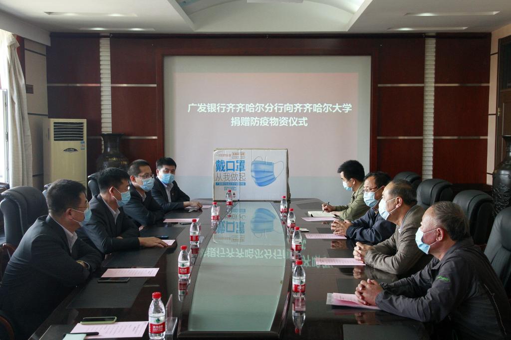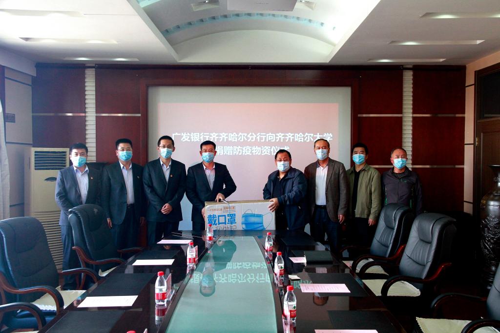 董玉庭代表學(xué)校向廣發(fā)銀行愛心助學(xué)的善舉表示感謝。他表示,在學(xué)校防疫工作面臨新挑戰(zhàn)和新考驗的關(guān)鍵時期,廣發(fā)銀行的愛心之舉,彰顯了企業(yè)的責(zé)任和擔(dān)當(dāng),為齊齊哈爾大學(xué)筑牢安全防線、打贏常態(tài)化疫情防控阻擊戰(zhàn)提供了有力的精神支持和物資保障。這份同舟共濟(jì)、眾志成城的大愛擔(dān)當(dāng),必能進(jìn)一步凝聚起校企同心戰(zhàn)勝疫情的強大力量,同時也將推動未來校企合作結(jié)出更多更豐碩的成果。