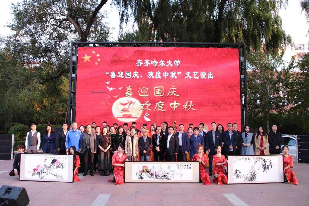 9月30日下午,學(xué)校在三致廣場(chǎng)隆重舉行齊齊哈爾大學(xué)2020年“喜迎國(guó)慶、歡度中秋”文藝演出,揭開(kāi)了“國(guó)慶、中秋”期間校園文化節(jié)系列活動(dòng)的序幕。校黨委書(shū)記陳桂芝、黨委副書(shū)記齊宏偉、校工會(huì)主席陶佰睿與現(xiàn)場(chǎng)三百余名師生共同欣賞了為偉大祖國(guó)71華誕獻(xiàn)禮的精彩演出。本次演出由校黨委宣傳部主辦,音樂(lè)與舞蹈學(xué)院、美術(shù)與藝術(shù)設(shè)計(jì)學(xué)院承辦,匯集了演唱、舞蹈、服裝設(shè)計(jì)展演、書(shū)畫(huà)創(chuàng)作表演、器樂(lè)演奏等多種形式,參演師生通過(guò)精心準(zhǔn)備的節(jié)目,以青春的旋律喜迎中秋,以愛(ài)國(guó)的詩(shī)篇祝福祖國(guó),深情謳歌了偉大祖國(guó)走向復(fù)興之路的風(fēng)雨歷程,盡情抒發(fā)了我校廣大師生對(duì)美好生活的向往和追求,為偉大祖國(guó)71歲華誕獻(xiàn)上了最美好的祝福。
