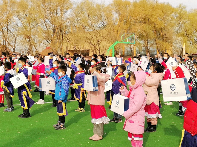 當(dāng)志愿者把準(zhǔn)備好的94份“愛(ài)心助學(xué)包”送到孩子們手里的時(shí)候,孩子們臉上洋溢著幸福的笑容。