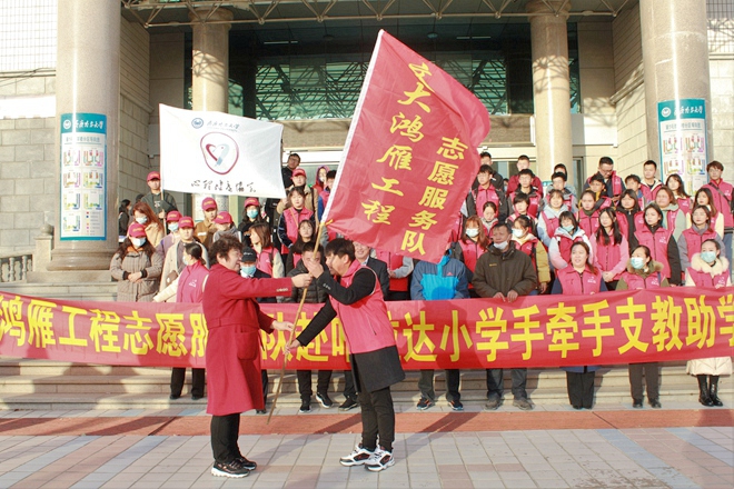 出征前,“鴻雁工程”志愿服務(wù)隊(duì)舉行了出征授旗儀式。校黨委副書(shū)記張文治出席授旗儀式,食品與生物工程學(xué)院部分師生、相關(guān)職能部門(mén)負(fù)責(zé)人,以及原食品與生物工程學(xué)院黨委書(shū)記楊淳、副書(shū)記趙振華參加了儀式。