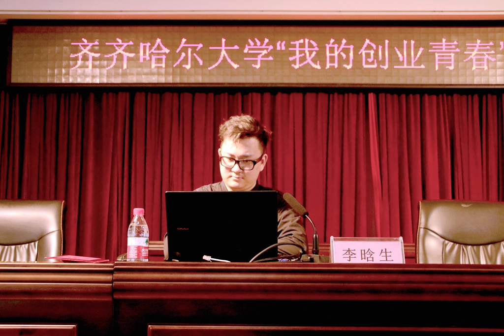 開幕式后,舉行本屆科技節(jié)第一項校級活動—“我的創(chuàng)業(yè)青春”大學(xué)生創(chuàng)業(yè)故事分享會。學(xué)校特聘的齊齊哈爾大學(xué)創(chuàng)新創(chuàng)業(yè)導(dǎo)師、青年創(chuàng)業(yè)代表李晗生與在場師生共同分享了他的創(chuàng)新創(chuàng)業(yè)故事。