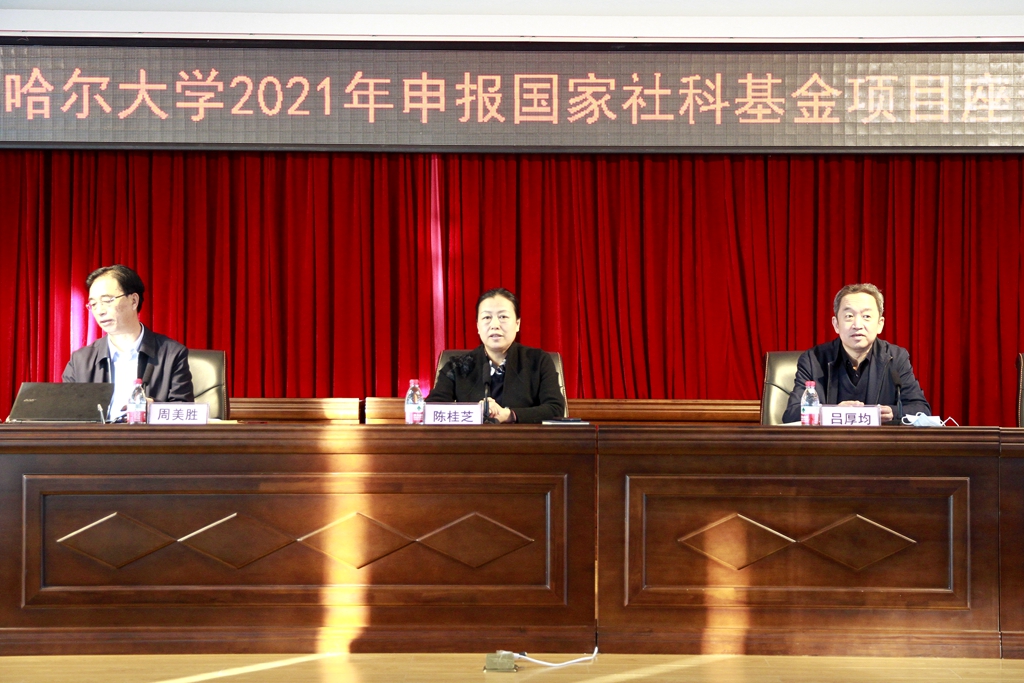 12月1日上午,學(xué)校在林校區(qū)求實(shí)樓五樓會(huì)議室召開2021年申報(bào)國(guó)家社科基金項(xiàng)目座談會(huì)。省委宣傳部二級(jí)巡視員、省哲學(xué)社會(huì)科學(xué)辦公室主任周美勝,黑龍江大學(xué)原副校長(zhǎng)丁立群教授,校黨委書記陳桂芝,副校長(zhǎng)呂厚均出席會(huì)議,科研處及各相關(guān)學(xué)院申報(bào)國(guó)家社科基金的教師、博士及青年骨干教師參加座談會(huì)。會(huì)議由陳桂芝主持。