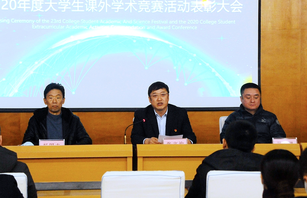 科技自立自強,青春承載夢想。12月11日下午,學校第二十三屆大學生學術(shù)科技節(jié)閉幕式暨2020年度大學生課外學術(shù)競賽活動表彰大會在西區(qū)主樓七樓學術(shù)報告廳舉行。本屆科技節(jié)組委會主任、校黨委副書記張文治出席大會,學生工作部(學生處)、招生就業(yè)處、科研處、教務(wù)處、團委等部門負責人,各學院主管學生工作的黨委書記、副書記,各學院團委書記,創(chuàng)新創(chuàng)業(yè)活動指導(dǎo)教師代表,本屆科技節(jié)組委會成員和各學院80余名學生代表參加了閉幕式。閉幕式由校團委副書記計紅主持。