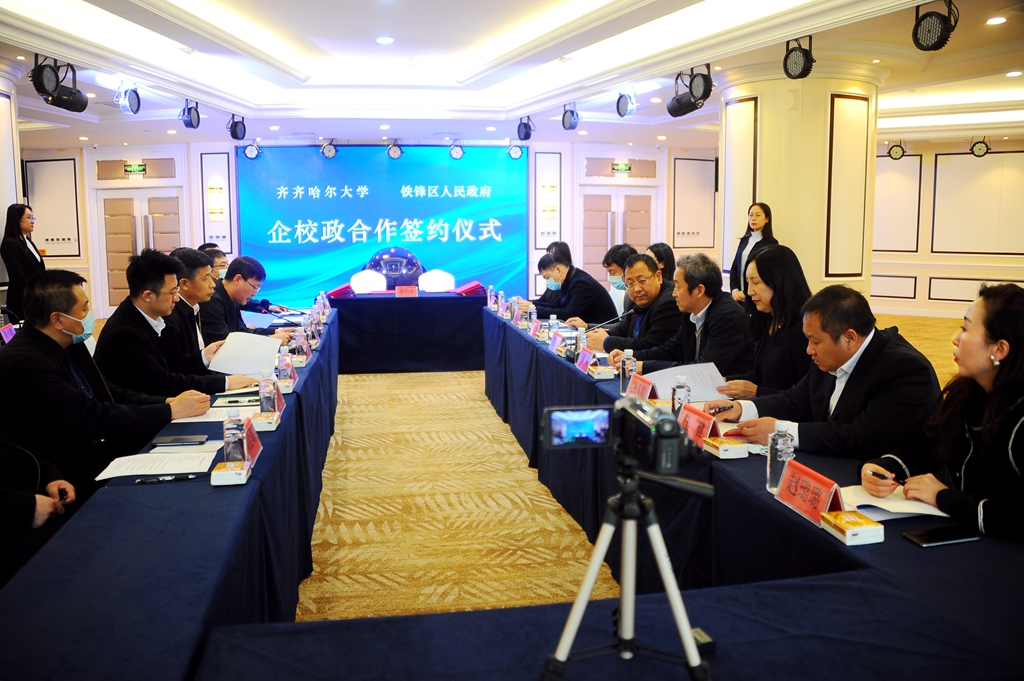 3月26日下午,齊齊哈爾大學(xué)和齊齊哈爾市鐵鋒區(qū)政府等單位企校政合作簽約儀式在和美國際酒店(廬山廳)舉行,鐵鋒區(qū)區(qū)委書記陳寶柱、區(qū)長王其林以及鐵鋒區(qū)區(qū)委區(qū)政府相關(guān)領(lǐng)導(dǎo),我校校長董玉庭、副校長呂厚均出席簽約儀式。王其林主持簽約儀式。