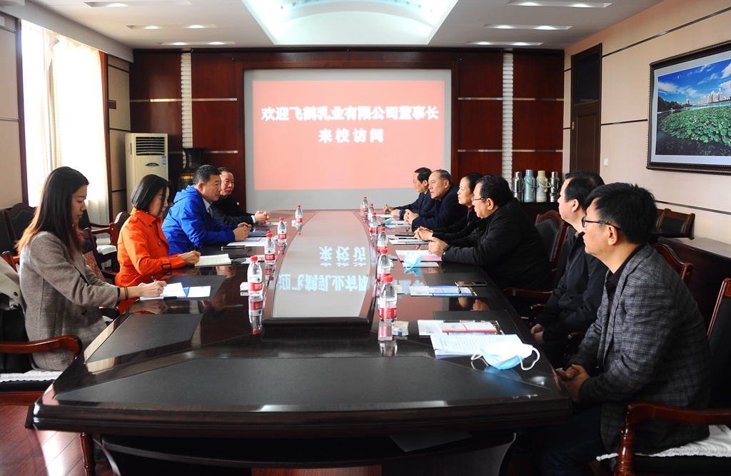 4月15日上午,飛鶴乳業(yè)有限公司董事長冷友斌來我校訪問交流,校黨委書記陳桂芝、校長董玉庭、副校長王剛在辦公樓504會議室會見了冷友斌一行。