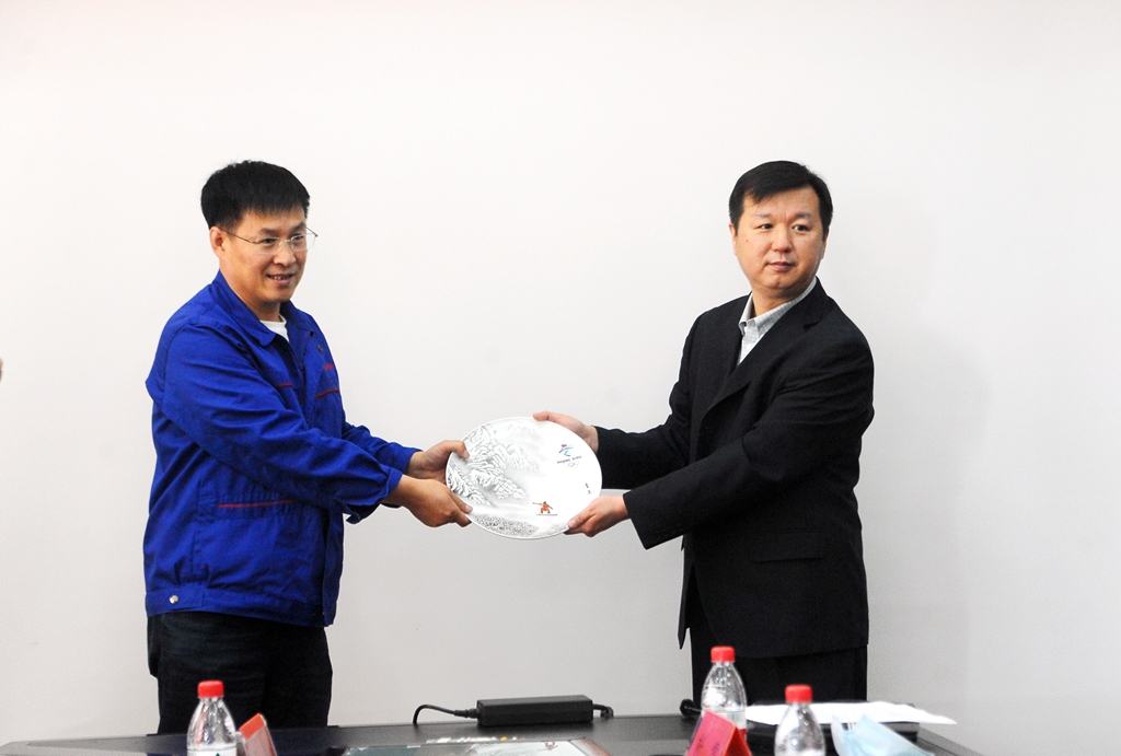 李奇楠代表學(xué)校接受了杭奧電梯捐贈(zèng)的冰球器材并向杭奧電梯贈(zèng)送了冬奧紀(jì)念禮品。