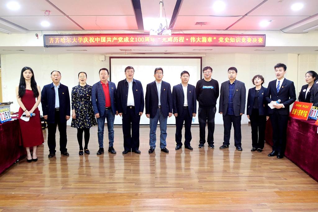 在全校黨員中開展黨史知識競賽活動,是學校黨委慶祝中國共產(chǎn)黨成立100周年系列活動之一。本次黨史知識競賽自5月初啟動以來,學校黨委組織部科學指導,精心組織;學校團委、馬克思主義學院、音樂與舞蹈學院、文學與歷史文化學院、教育與傳媒學院等部門(單位)密切配合、大力支持;各基層黨委、直屬黨支部充分重視,認真落實,積極擴大活動覆蓋面,保證活動參與率,確保本次活動圓滿完成,全校28個二級黨組織的28支代表隊全部參與了初賽。通過黨史知識測試、知識問答競賽等多種形式精心選拔參賽選手,堅持把知識競賽活動與開展黨日活動結(jié)合起來,與開展黨史學習教育結(jié)合起來,全面激發(fā)了廣大師生立足新時代、奮力新作為、創(chuàng)造新業(yè)績的熱情。離退休黨委克服困難,積極組織老黨員參賽,84歲高齡的離休第一黨支部書記黨文魁老師出現(xiàn)在初賽、復賽現(xiàn)場,身先士卒、率先垂范“學黨史悟思想、守初心跟黨走”的責任感和使命感,深深感染帶動著現(xiàn)場的參賽選手和觀眾,也成為本次比賽的一道靚麗風景。