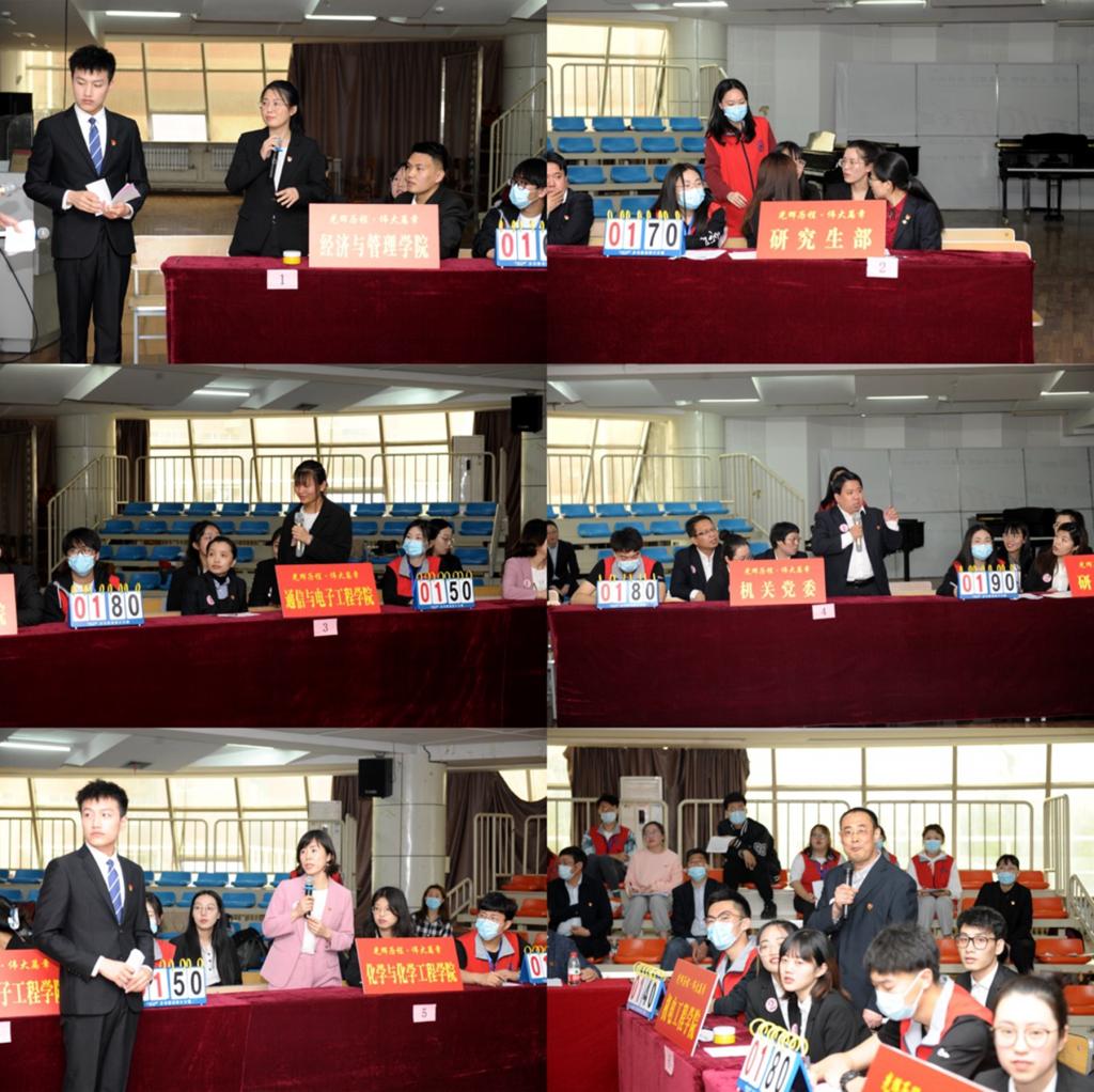 本次競賽內(nèi)容涉及黨章黨規(guī)、中國共產(chǎn)黨史、新中國史、改革開放史、社會主義發(fā)展史等相關內(nèi)容,全校在職教工黨員和學生黨員參賽。決賽設置了“初試鋒芒”-個人必答題、“同舟共濟”-團隊必答題、“爭分奪秒”-搶答題、“絕地反擊”-風險題、“你追我趕”-附加題等環(huán)節(jié),采用現(xiàn)場競賽、現(xiàn)場評比方式進行。
