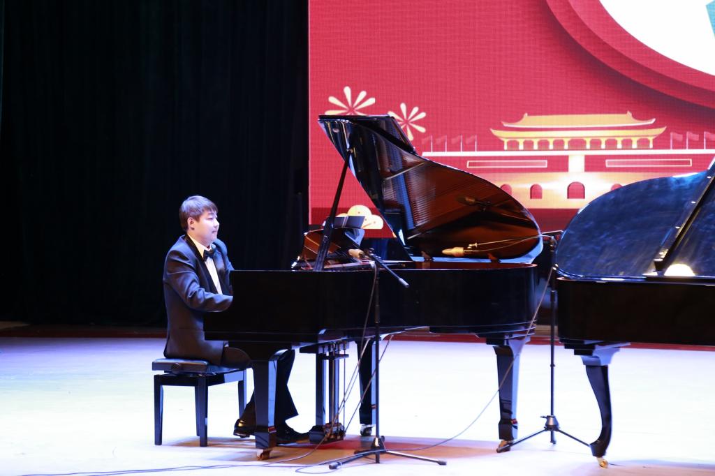 此次音樂(lè)會(huì)所有節(jié)目,均由音樂(lè)與舞蹈學(xué)院白斌老師精心挑選、編排和指導(dǎo)。其中,取材于抗日救亡歌曲的《黃河鋼琴協(xié)奏曲》,不僅融入船夫號(hào)子等中國(guó)民間傳統(tǒng)音樂(lè)元素,而且其史詩(shī)的結(jié)構(gòu)、華麗的技巧、豐富的層次和壯闊的意境,均使之成為世界音樂(lè)史上較有影響力的一首中國(guó)協(xié)奏曲,讓所有聆聽(tīng)者感受到了高雅音樂(lè)的藝術(shù)魅力;根據(jù)京劇板式變化結(jié)構(gòu)創(chuàng)作的作品《皮黃》,將京劇元素與鋼琴音樂(lè)完美地融合在一起,使得整首作品內(nèi)容豐富、極富戲劇性,引得臺(tái)下觀眾發(fā)出雷鳴般的掌聲;一首意大利鋼琴曲《來(lái)自中國(guó)的色彩》,曲調(diào)優(yōu)美動(dòng)聽(tīng)、平易近人、耐人尋味,給所有的現(xiàn)場(chǎng)聽(tīng)眾留下了深刻印象;一首旋律親切、生動(dòng)的鋼琴曲《我的祖國(guó)》,前半部曲調(diào)委婉動(dòng)聽(tīng),三段旋律就像是三幅美麗的圖畫(huà),深切地表達(dá)了表演者濃烈的愛(ài)國(guó)主義思想,仿佛奏響了志愿軍戰(zhàn)士對(duì)祖國(guó)、對(duì)家鄉(xiāng)的無(wú)限熱愛(ài)之情和英雄主義的氣概,格外引人入勝;尤其是壓軸曲目、抗日鋼琴曲《松花江上》,以激昂、悲憤的曲調(diào),再現(xiàn)了東北軍和東北人民英勇戰(zhàn)斗、不畏犧牲的場(chǎng)景,極其催人奮進(jìn)……
