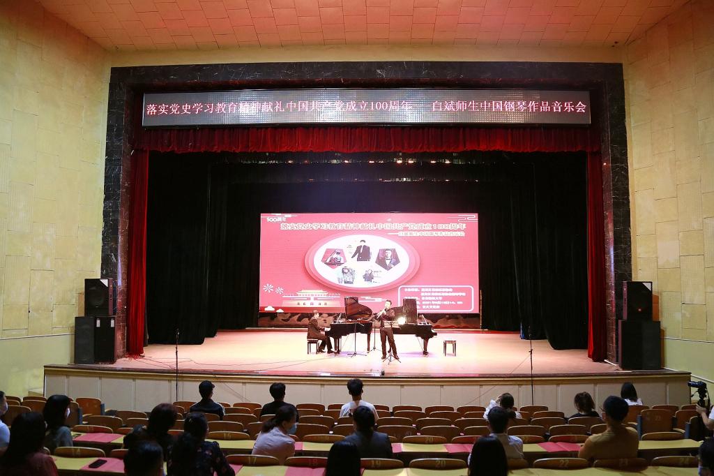 百年征程,波瀾壯闊。百年初心,歷久彌堅(jiān)。為深入推進(jìn)黨史學(xué)習(xí)教育工作,熱烈慶祝中國(guó)共產(chǎn)黨成立100周年,6月18日,由黑龍江省音樂(lè)家協(xié)會(huì)、黑龍江省音樂(lè)家協(xié)會(huì)鋼琴學(xué)會(huì)主辦,齊齊哈爾大學(xué)承辦的“落實(shí)黨史學(xué)習(xí)教育精神獻(xiàn)禮中國(guó)共產(chǎn)黨成立100周年——白斌師生中國(guó)鋼琴作品音樂(lè)會(huì)”在文化宮舉行。音樂(lè)會(huì)由文學(xué)與歷史文化學(xué)院(新聞傳播學(xué)院)馬宇航老師主持。
