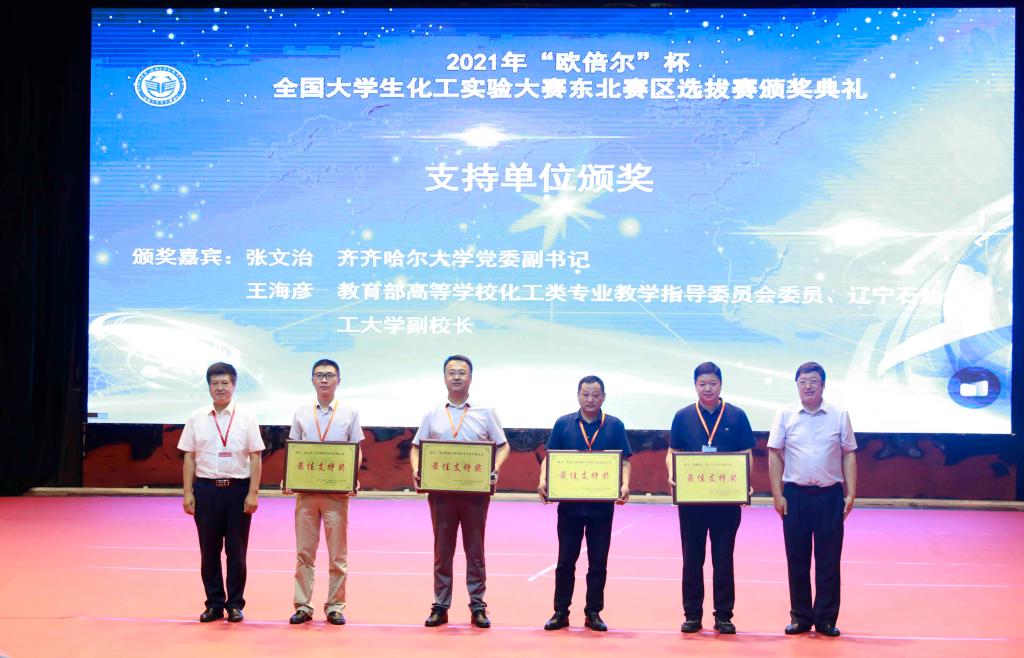 為貫徹落實(shí)全國(guó)教育大會(huì)精神,推動(dòng)高等學(xué)?;ゎ悓I(yè)“新工科”建設(shè),提高化工類本科專業(yè)核心課程教學(xué)質(zhì)量,加強(qiáng)大學(xué)生綜合素質(zhì)與能力培養(yǎng),7月26日-29日,由中國(guó)化工教育協(xié)會(huì)主辦的2021年“歐倍爾”全國(guó)大學(xué)生化工實(shí)驗(yàn)大賽東北賽區(qū)選拔賽在我校成功舉辦。