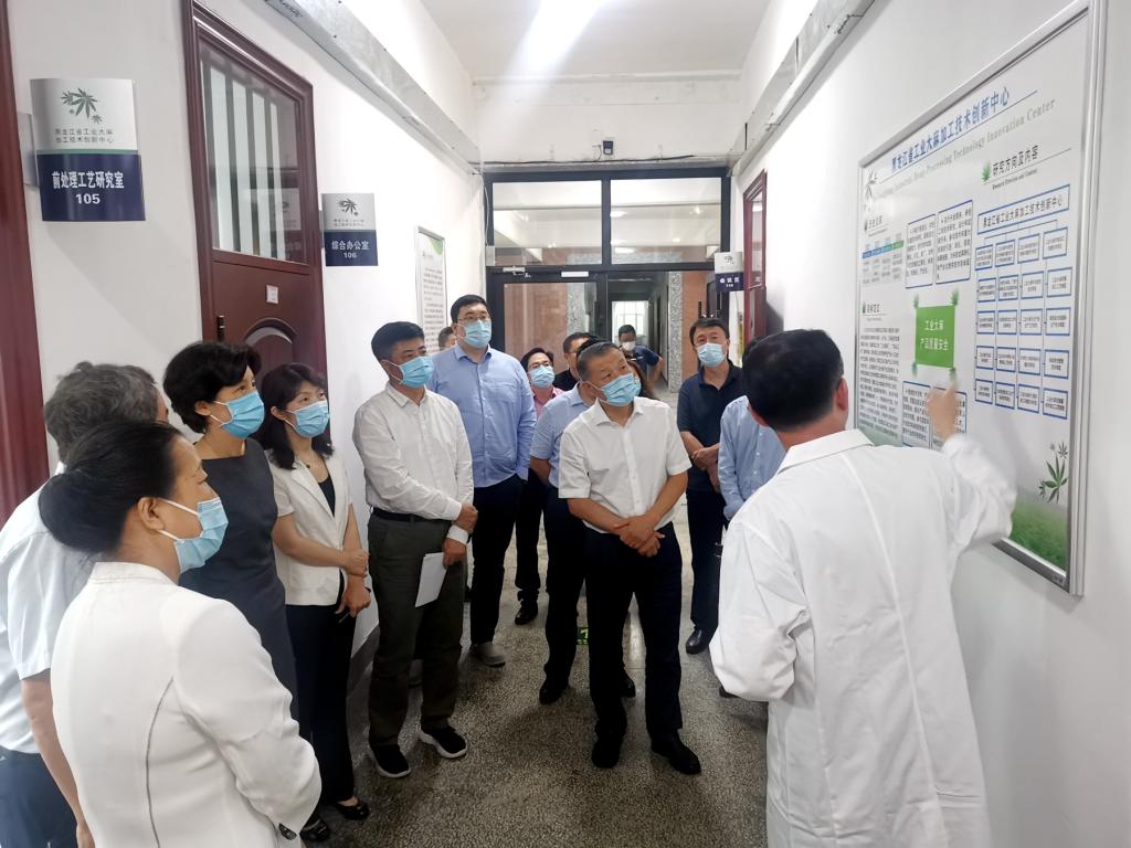 調(diào)研期間,劉愛麗一行在校黨委書記陳桂芝、校長董玉庭、副校長呂厚均等陪同下,實地考察了我校寒區(qū)麻及制品教育部工程研究中心及黑龍江省工業(yè)大麻及制品檢驗檢測中心,并深入我校南校區(qū)齊齊哈爾大學(xué)科技園,考察了黑龍江省工業(yè)大麻加工技術(shù)創(chuàng)新中心和黑龍江省農(nóng)業(yè)微生物制劑產(chǎn)業(yè)化技術(shù)創(chuàng)新中心,參觀了各平臺的科研儀器設(shè)備,聽取了相關(guān)負(fù)責(zé)人關(guān)于科研創(chuàng)新平臺建設(shè)運行、研究方向、人才培養(yǎng)、科學(xué)研究、成果轉(zhuǎn)化等方面的匯報。