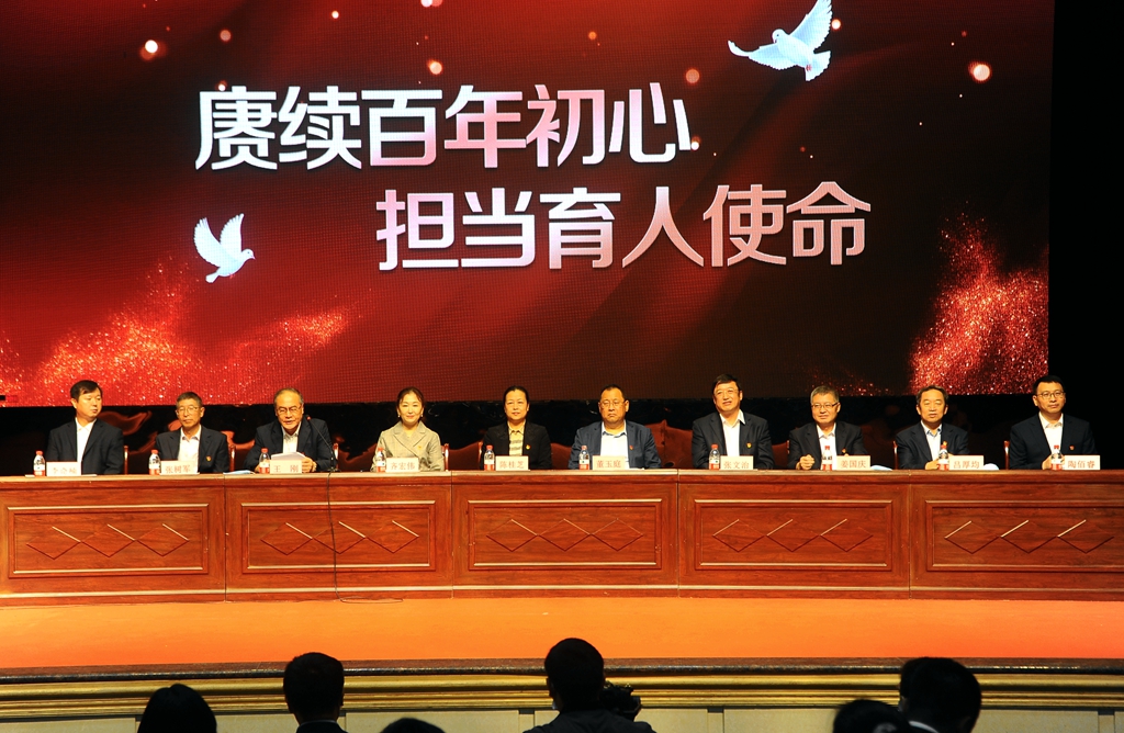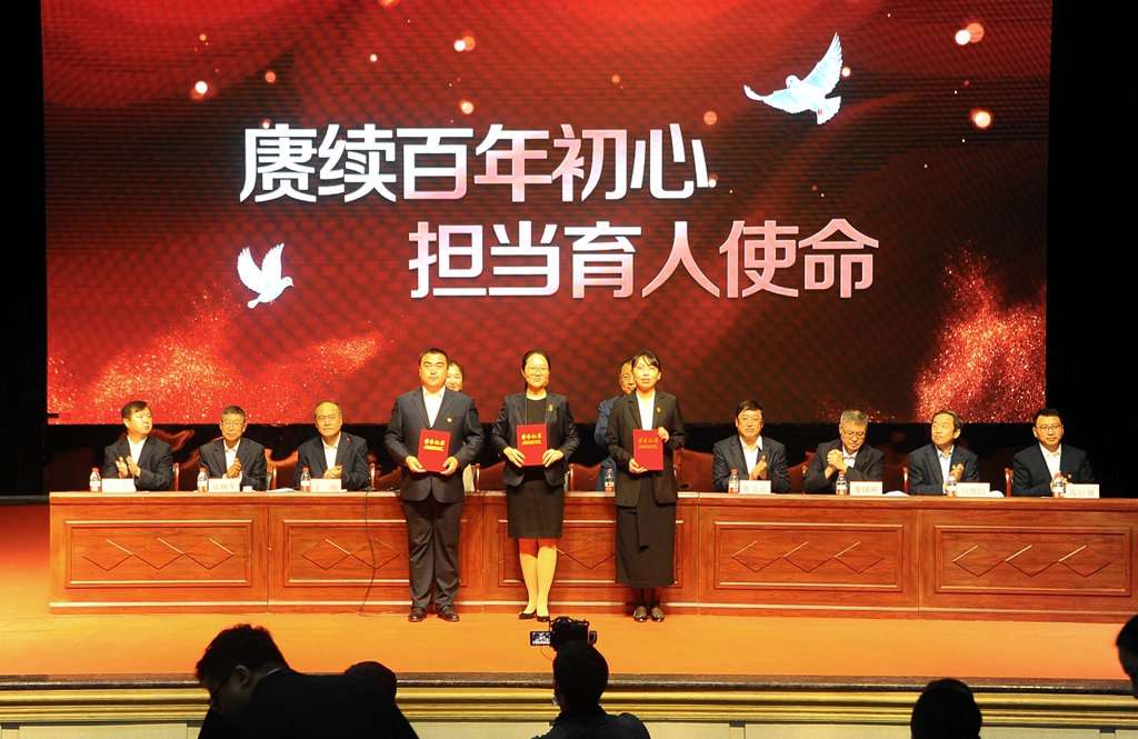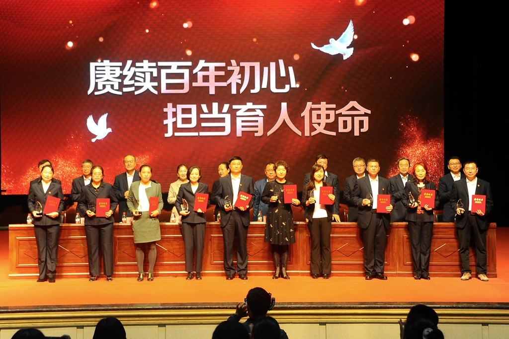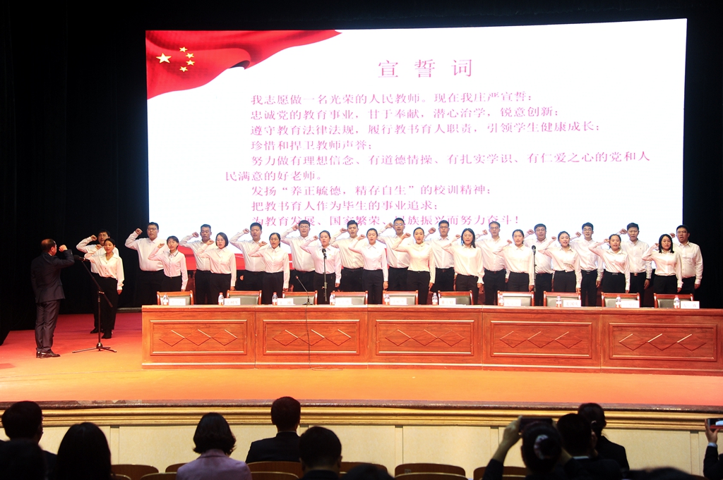 9月10日上午,學(xué)校干部職工代表在文化宮以表彰先進、新教師入職宣誓的方式慶祝第三十七個教師節(jié)。