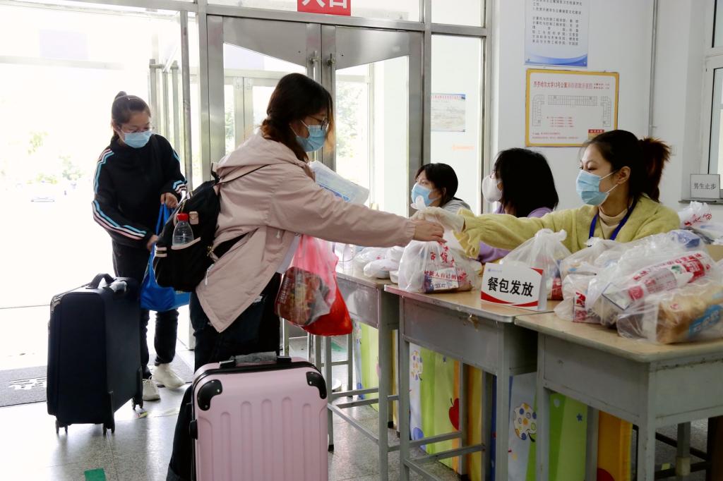 秩序井然,返校有“愛”。9月11日早六點左右,學(xué)生工作部(處)、保衛(wèi)處、后勤管理處、校醫(yī)務(wù)所等各部門的工作人員們就已經(jīng)準(zhǔn)備就緒,等待著首批返校學(xué)生的歸來。查驗龍江健康碼、“完美校園”返校碼,對學(xué)生攜帶的行李進(jìn)行全面消毒,完成紅外線測溫,進(jìn)行核酸檢測,核對與檢測無誤后進(jìn)入校園返回宿舍……各部門工作人員分工協(xié)作、密切配合,認(rèn)真實施“一查二消三測四核五通過”舉措,返?,F(xiàn)場有條不紊、秩序井然。初秋的校園,乍暖還寒,面對低溫天氣,學(xué)生工作部(處)積極應(yīng)對,準(zhǔn)備了愛心餐包等物資,更與其他部門通力合作,第一時間解決了返?,F(xiàn)場反饋的問題和返校學(xué)生的需求,保證每名返校學(xué)生暖心入校,用細(xì)致貼心的關(guān)愛,讓前來送行的家長放心,更讓欣然歸來的學(xué)生安心。