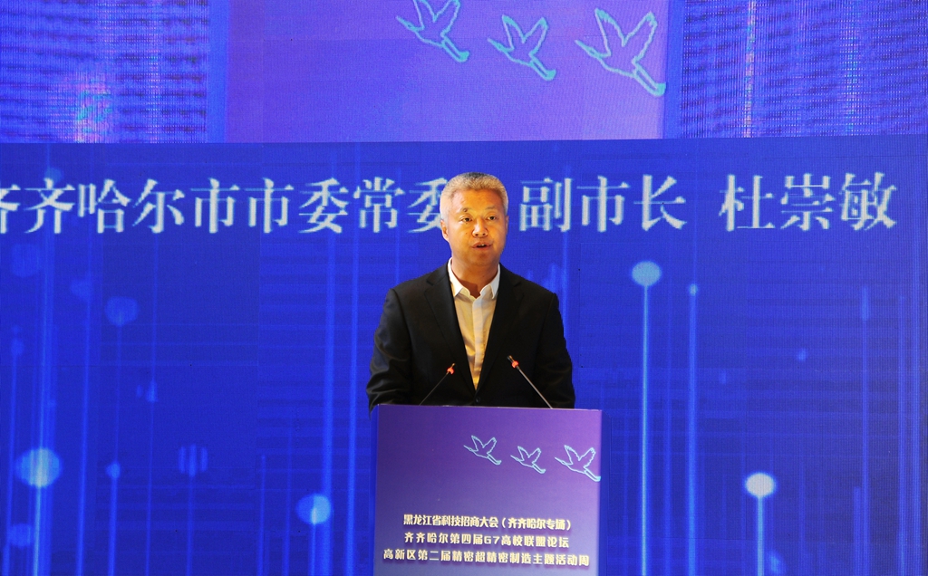 杜崇敏在致辭中指出,多年來,齊齊哈爾大學(xué)根植鶴城、融入發(fā)展,深化產(chǎn)學(xué)研協(xié)同創(chuàng)新,務(wù)實服務(wù)企業(yè)創(chuàng)新發(fā)展,加速成果落地轉(zhuǎn)化,助推了齊齊哈爾市經(jīng)濟高質(zhì)量發(fā)展。學(xué)校在微生物菌劑、工業(yè)大麻、果蔬雜糧飲品、玉米深加工等方面的系列成果,與齊齊哈爾市重點產(chǎn)業(yè)發(fā)展密切相關(guān),建有多個省級以上創(chuàng)新平臺,技術(shù)水平在全省乃至全國處于領(lǐng)先地位,依托齊齊哈爾的產(chǎn)業(yè)資源、齊大的成果優(yōu)勢招商引資,實現(xiàn)科技成果規(guī)模化生產(chǎn)應(yīng)用,將對齊齊哈爾市相關(guān)重點產(chǎn)業(yè)建鏈補鏈延鏈強鏈發(fā)揮重要作用。未來,市校雙方將繼續(xù)深入開展務(wù)實合作,希望齊齊哈爾大學(xué)把更多的成果落地齊齊哈爾,更多的資源投入到齊齊哈爾,更多的人才留在齊齊哈爾。齊齊哈爾市也將全力以赴為齊齊哈爾大學(xué)的專家提供最大支持、最優(yōu)服務(wù)、最強保障。祝愿市校合作、校企合作再結(jié)碩果,打贏成果本地轉(zhuǎn)化攻堅戰(zhàn),為鶴城高質(zhì)量發(fā)展貢獻最大力量!