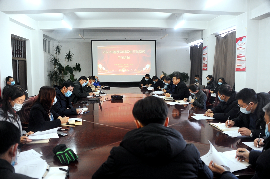 為深入貫徹落實上級關于新冠肺炎疫情防控工作部署,結合當前疫情防控形勢和學校實際,嚴實精準做好春季學期開學返校報到各項工作,2月23日下午,學校在中主516會議室召開2022年春季學期學生開學返校工作會議。校黨委副書記張文治出席并主持會議,相關職能部門負責人、各學院主管學生工作領導以及學生工作部(學生處)相關科室干部參加了本次會議。