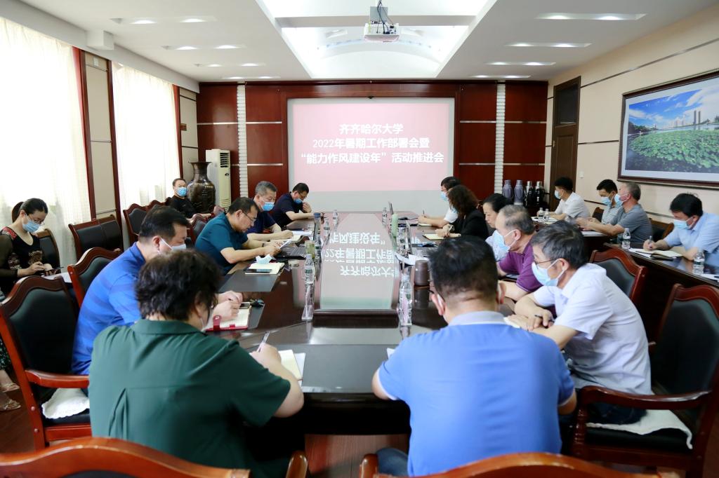 陳桂芝強(qiáng)調(diào),暑期是全年工作起承轉(zhuǎn)合的重要階段,很多任務(wù)必須在這段時(shí)間里進(jìn)行。我們要始終把校園安全穩(wěn)定放在第一位,堅(jiān)決貫徹落實(shí)上級(jí)、屬地和學(xué)校黨委防疫部署要求,強(qiáng)化底線思維、增強(qiáng)風(fēng)險(xiǎn)意識(shí),以大概率思維和準(zhǔn)備應(yīng)對(duì)小概率事件和災(zāi)害,堅(jiān)決打好安全硬仗;要把創(chuàng)新作為引領(lǐng)發(fā)展的第一動(dòng)力,把興學(xué)強(qiáng)校的基點(diǎn)放在創(chuàng)新上,讓創(chuàng)新貫穿管黨辦學(xué)全過程、驅(qū)動(dòng)事業(yè)新發(fā)展;要保持戰(zhàn)略定力,堅(jiān)定發(fā)展信心,充分認(rèn)識(shí)增值性評(píng)價(jià)在推動(dòng)高質(zhì)量發(fā)展中的意義和作用,以增值性評(píng)價(jià)倒逼創(chuàng)先爭(zhēng)優(yōu);要深入貫徹落實(shí)省十三次黨代會(huì)部署,扎實(shí)推進(jìn)“能力作風(fēng)建設(shè)年”活動(dòng),進(jìn)一步筑牢信仰之基、打牢從政之基、夯實(shí)廉政之基、強(qiáng)化能力之基,為學(xué)校事業(yè)高質(zhì)量發(fā)展貢獻(xiàn)更多智慧和力量,以實(shí)際行動(dòng)開拓高質(zhì)量教育體系的齊大路徑,用辦學(xué)治校的新成果喜迎黨的二十大勝利召開。