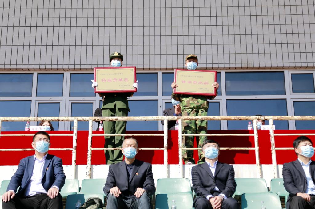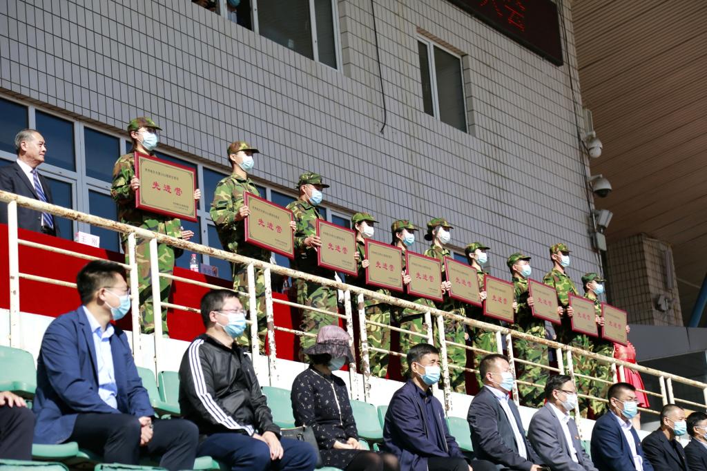 校工會主席陶佰睿宣讀了軍訓(xùn)表彰名單,與會領(lǐng)導(dǎo)為榮獲先進(jìn)營及特殊貢獻(xiàn)獎單位代表頒發(fā)了榮譽獎牌。隨后,參訓(xùn)新生代表進(jìn)行了精彩的軍訓(xùn)匯報表演。