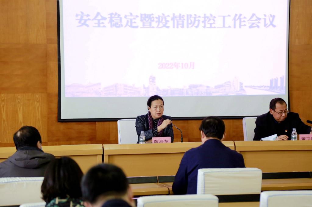 陳桂芝代表學校黨委就抓好黨的二十大期間學校安全穩(wěn)定和疫情防控工作強調三點要求:一要提高政治站位,堅持高標準抓好安全穩(wěn)定和疫情防控工作;二要落實安全責任,堅持高質量抓好安全穩(wěn)定和疫情防控工作;三要合力齊抓共管,堅持高效度抓好安全穩(wěn)定和疫情防控工作。