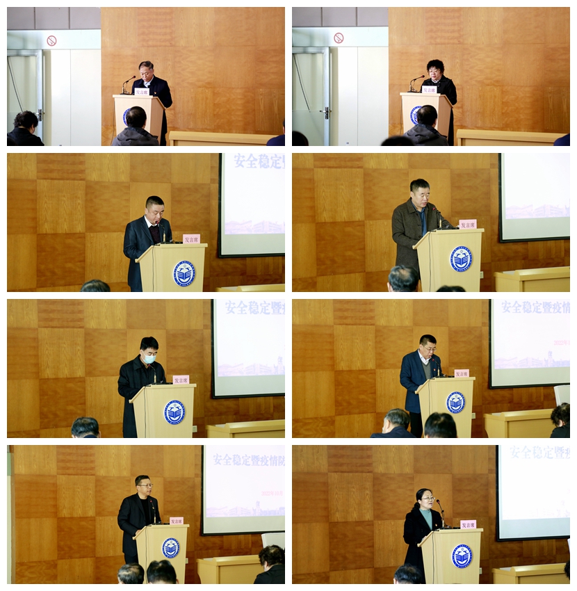 校長董玉庭從牢固樹立安全發(fā)展理念、堅決筑牢政治安全和意識形態(tài)安全防線、全面落實校園安全管理措施、統(tǒng)籌做好校園疫情防控、扎實開展輿論氛圍營造工作等五個方面就進一步做好黨的二十大召開期間學校安全穩(wěn)定和疫情防控工作進行了安排部署。