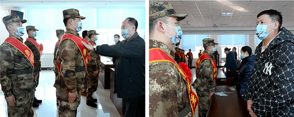 學(xué)校及相關(guān)學(xué)院領(lǐng)導(dǎo)為新兵帶上大紅花