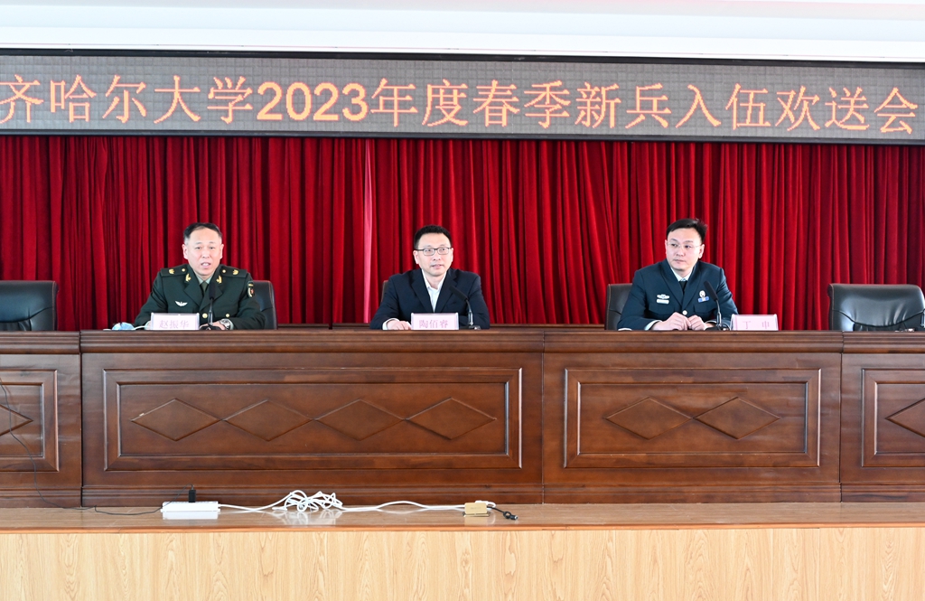 陶佰睿在講話中為各位同學(xué)積極響應(yīng)國家號召,攜筆從戎,保家衛(wèi)國,綻放青春的實際行動點贊。他對全體應(yīng)征入伍新兵提出了三點希望:一是要提高政治站位,不忘初心使命。堅定擁護“兩個確立”,增強“四個意識”、堅定“四個自信”、做到“兩個維護”。同學(xué)們要在軍營中歷練成長,要把責(zé)任扛在肩上、把榮譽放置心中,用實際行動保衛(wèi)祖國的繁榮與安寧;二是要磨煉頑強意志,錘煉過硬本領(lǐng)。同學(xué)們要珍惜軍旅生涯,不怕苦累,認真訓(xùn)練,鍛煉自己堅強的意志品質(zhì)、過硬的軍事素質(zhì),安心服役,爭做新時代優(yōu)秀軍人;三是要傳承母校精神,彰顯齊大風(fēng)采。學(xué)校永遠是同學(xué)們最堅強的后盾、最溫暖的港灣,希望同學(xué)們把齊大精神帶到部隊,讓齊大精神在軍營里閃光,為母校增光添彩。