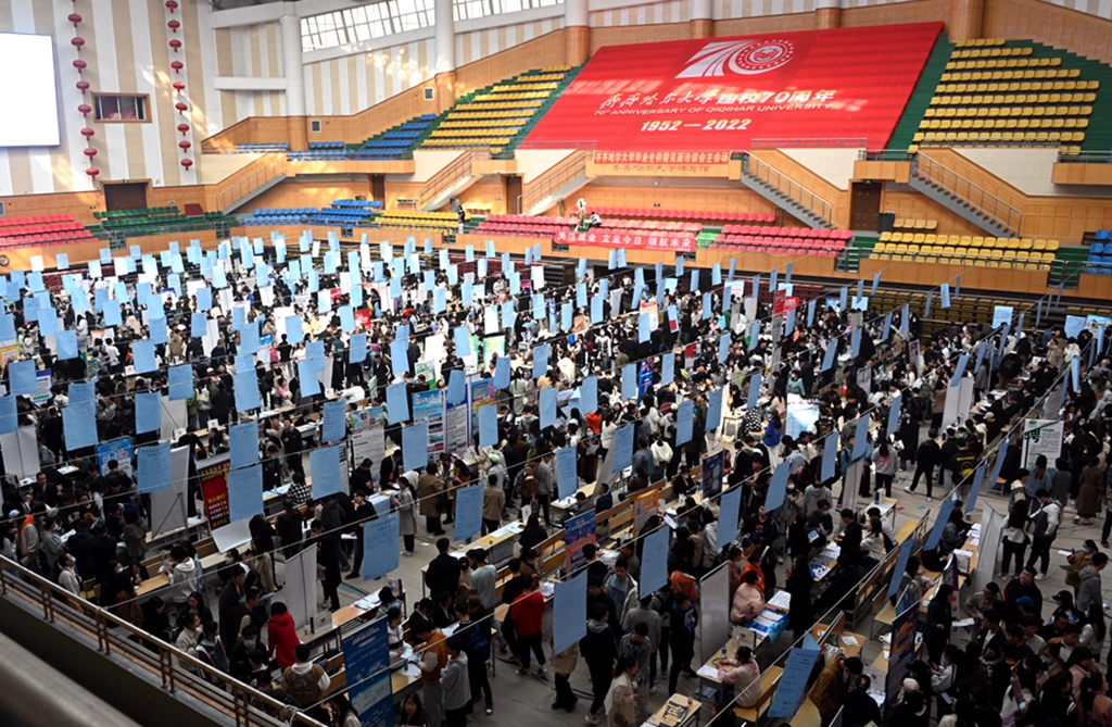 4月1日,齊齊哈爾大學(xué)2023屆畢業(yè)生大型供需見面洽談會(huì)暨黑龍江省2023屆高校畢業(yè)生春季校園招聘系列活動(dòng)齊齊哈爾大學(xué)分會(huì)場在西區(qū)體育館舉辦。