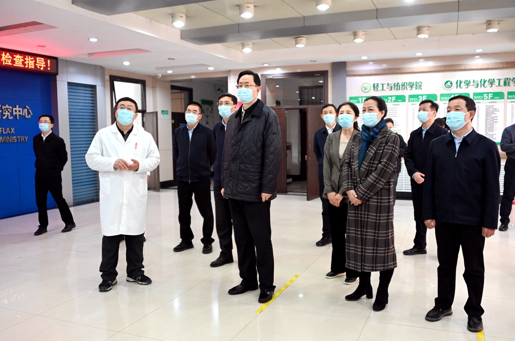 期間,藍(lán)紹敏參觀了我校校史館,聽取了學(xué)校發(fā)展歷程和師資隊伍、學(xué)科建設(shè)、科學(xué)研究等方面的介紹,實地察看了寒區(qū)麻及制品教育部工程研究中心、植物性食品加工技術(shù)教育部工程研究中心。每到一處,藍(lán)紹敏都詳細(xì)了解了科研平臺建設(shè)、科技成果轉(zhuǎn)化、校地校企合作等情況和工作中遇到的困難。當(dāng)?shù)弥獙W(xué)校在玉米深加工技術(shù)領(lǐng)域獲得突破,研發(fā)出的以玉米為原料的食物和飲品即將走向市場,他鼓勵有關(guān)部門瞄準(zhǔn)廣闊的消費市場,努力培育有活力的食品企業(yè),在“原料本土化、高度增值化、工業(yè)規(guī)?;钡臈l件下,著力發(fā)展大眾快消品。同時,他希望學(xué)校立足辦學(xué)特色和優(yōu)勢,聚焦“4567”現(xiàn)代化產(chǎn)業(yè)體系,圍繞生物經(jīng)濟、農(nóng)業(yè)現(xiàn)代化做文章,加強產(chǎn)學(xué)研協(xié)調(diào)創(chuàng)新,拓展研究領(lǐng)域,深化技術(shù)儲備,為現(xiàn)代化強省建設(shè)提供人才與技術(shù)支持。