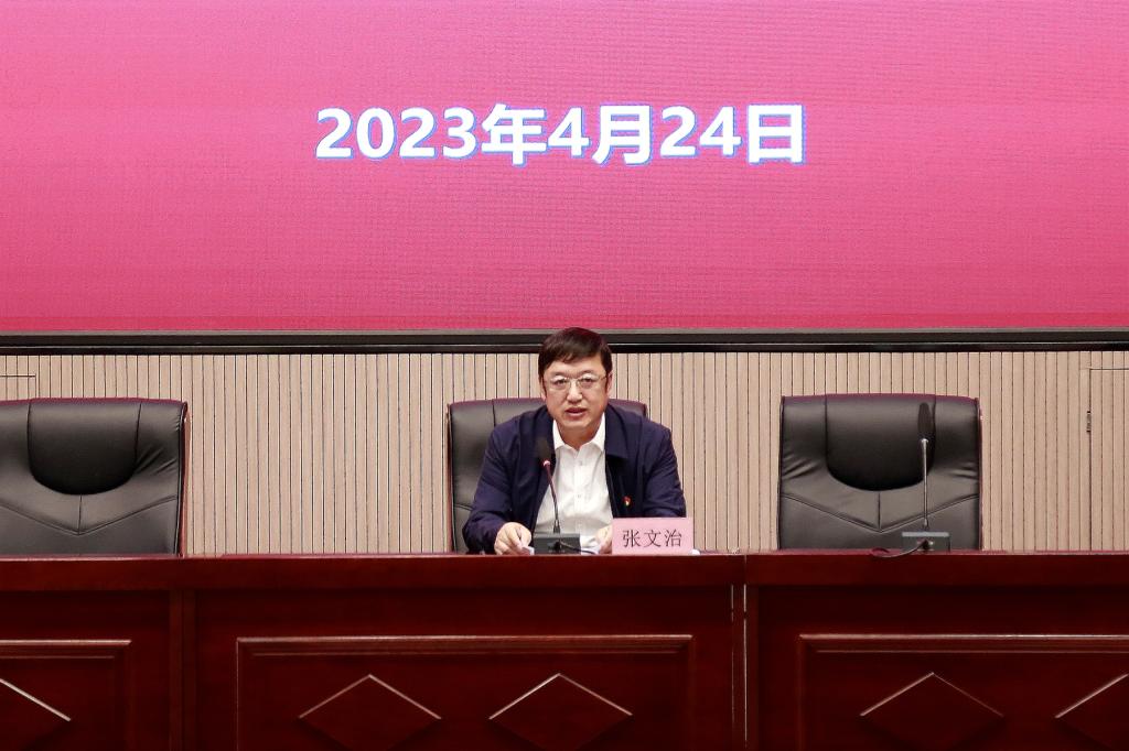 4月24日下午,學校在日新大廈四樓報告廳舉行處級干部學習貫徹習近平新時代中國特色社會主義思想主題教育專題讀書班交流會。全校副處級以上干部參加會議。會議由校黨委副書記、主題教育領導小組副組長張文治主持并作總結講話。