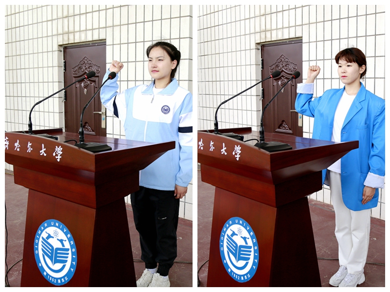 運動員代表教師教育學院學前教育專業(yè)203班張思琪代表全體運動員宣誓,裁判員代表體育學院體育教育專業(yè)212班邱楠楠同學同學代表全體裁判員宣誓。