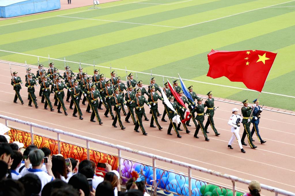伴隨著雄壯的運動員進行曲,包括前導隊、裁判員隊伍、機關及各學院代表隊在內(nèi)的26個檢閱隊伍依次走過主席臺,接受大會檢閱。檢閱人員服裝整齊,精神飽滿,口號響亮,展現(xiàn)了我校師生良好的精神風貌。