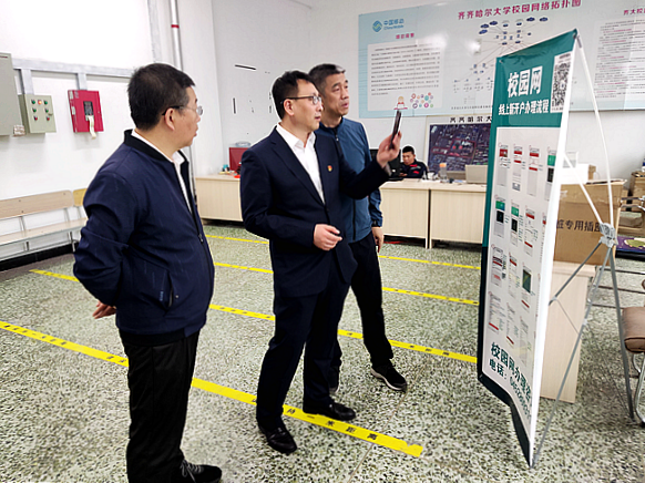 5月25日下午,校主題教育領導小組成員、校工會主席陶佰睿深入網(wǎng)絡信息中心,詳細聽取了網(wǎng)絡信息中心主任孫涌泉關于新老用戶入網(wǎng)、用戶繳費、網(wǎng)絡故障報修、機房管理與維護等方面的介紹后,以學生用戶身份掃碼進行了線上入網(wǎng)辦理,同時對網(wǎng)絡故障報修、網(wǎng)絡運維、辦理入網(wǎng)程序和報修反饋機制提出了明確要求。陶佰睿強調(diào),校園網(wǎng)是為學校師生提供教學、科研、管理和綜合信息服務的重要載體,要不斷建立完善的網(wǎng)絡安全管理制度、運維體系和健全的校園網(wǎng)安全防護體系,不斷增強安全意識,提升網(wǎng)絡建設和管理水平,為建設有特色高水平應用型綜合大學提供安全穩(wěn)定的網(wǎng)絡環(huán)境。