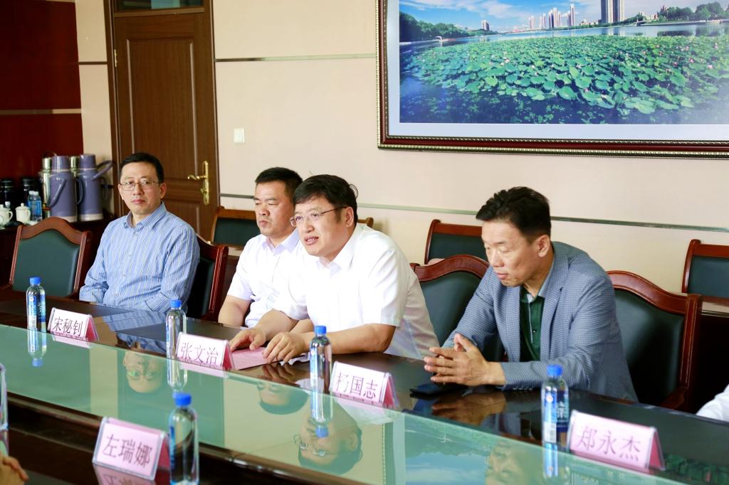 張文治代表學(xué)校對(duì)朱廣宇一行的到來(lái)表示熱烈歡迎,對(duì)山鷹國(guó)際長(zhǎng)期以來(lái)對(duì)學(xué)校的支持表示感謝,并詳細(xì)介紹了學(xué)校的歷史沿革、辦學(xué)條件、師資力量、專(zhuān)業(yè)設(shè)置、學(xué)科體系、科研平臺(tái)和服務(wù)社會(huì)情況。張文治指出,自2019年浙江山鷹紙業(yè)受邀到學(xué)校進(jìn)行人才招聘以來(lái),在輕工與紡織學(xué)院的積極推動(dòng)下,雙方開(kāi)展了良好的合作,取得了一定成效。本次校企雙方合作組建“山鷹紙業(yè)英才班”,實(shí)施聯(lián)合培養(yǎng),設(shè)立專(zhuān)項(xiàng)獎(jiǎng)學(xué)金,并對(duì)到崗學(xué)生進(jìn)行學(xué)費(fèi)代償,體現(xiàn)了山鷹國(guó)際對(duì)我校人才培養(yǎng)質(zhì)量和畢業(yè)生能力素質(zhì)的高度認(rèn)可,對(duì)進(jìn)一步深化應(yīng)用型人才培養(yǎng)模式改革,探索構(gòu)建人才培養(yǎng)與招生就業(yè)工作互促聯(lián)動(dòng)機(jī)制具有積極意義,期待本次合作能夠取得實(shí)實(shí)在在的成果,并為雙方更深層次合作奠定良好基礎(chǔ)。