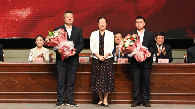 學(xué)校第九批“從事教育工作30年”的同志,一年來榮獲國家、省、市級重要榮譽、獲批高層次科研項目、獎項的集體和個人,學(xué)?!叭恕毕冗M集體和先進個人、第三批黃大年式教師團隊以及2023年度師德先進集體先進個人分別上臺接受表彰