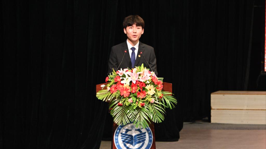 學(xué)生代表、機電工程學(xué)院過控203班王廣軒同學(xué)發(fā)言