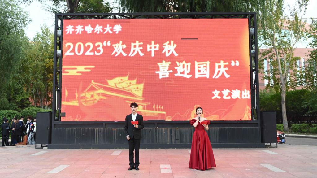 寄相思予明月,同祖國共風華。為大力弘揚中華民族優(yōu)秀傳統(tǒng)文化,深化精神文明建設,值此中秋和國慶雙節(jié)來臨之際,9月27日下午,學校2023年“歡度中秋·喜迎國慶”文藝演出在三致廣場舉辦。黨委副書記齊宏偉,紀委書記、黨委常委陸占權,黨委常委、宣傳部部長王曉梅與現(xiàn)場三百余名師生共同欣賞了為“雙節(jié)”獻禮的精彩演出。