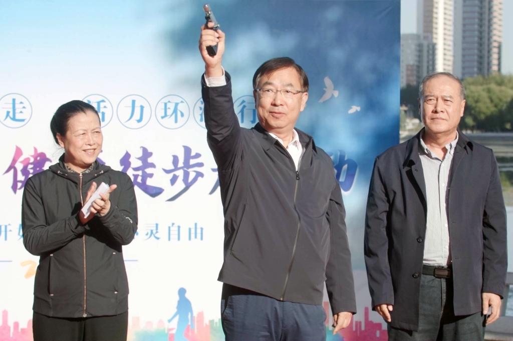 校長、黨委副書記郝文斌宣布活動開始,伴隨著發(fā)令槍聲,各基層工會依次列隊出發(fā)。環(huán)湖甬道上旗幟飄揚、人影攢動、身姿矯健,大家在指定地標建筑打卡、拍照,齊大人徒步運動成為秋日勞動湖畔一道亮麗的風(fēng)景線。