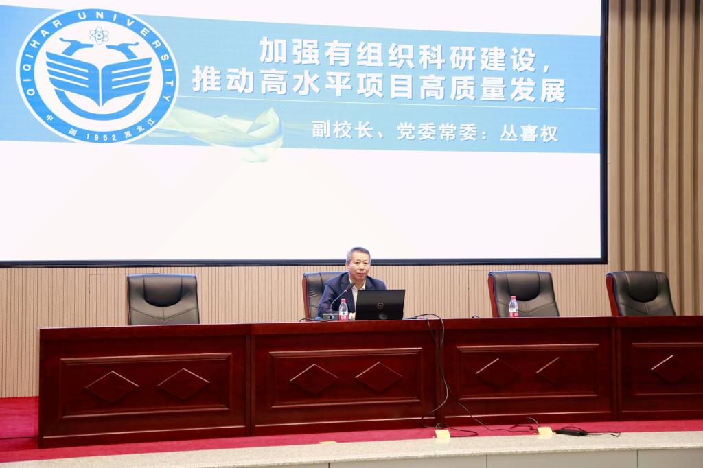 會(huì)上,叢喜權(quán)以“加強(qiáng)有組織科研建設(shè),推動(dòng)高水平項(xiàng)目高質(zhì)量發(fā)展”為題,從學(xué)校高水平項(xiàng)目的基本情況,存在的差距及不足以及下一步工作部署三個(gè)方面對(duì)我校高水平項(xiàng)目申報(bào)情況進(jìn)行了介紹。