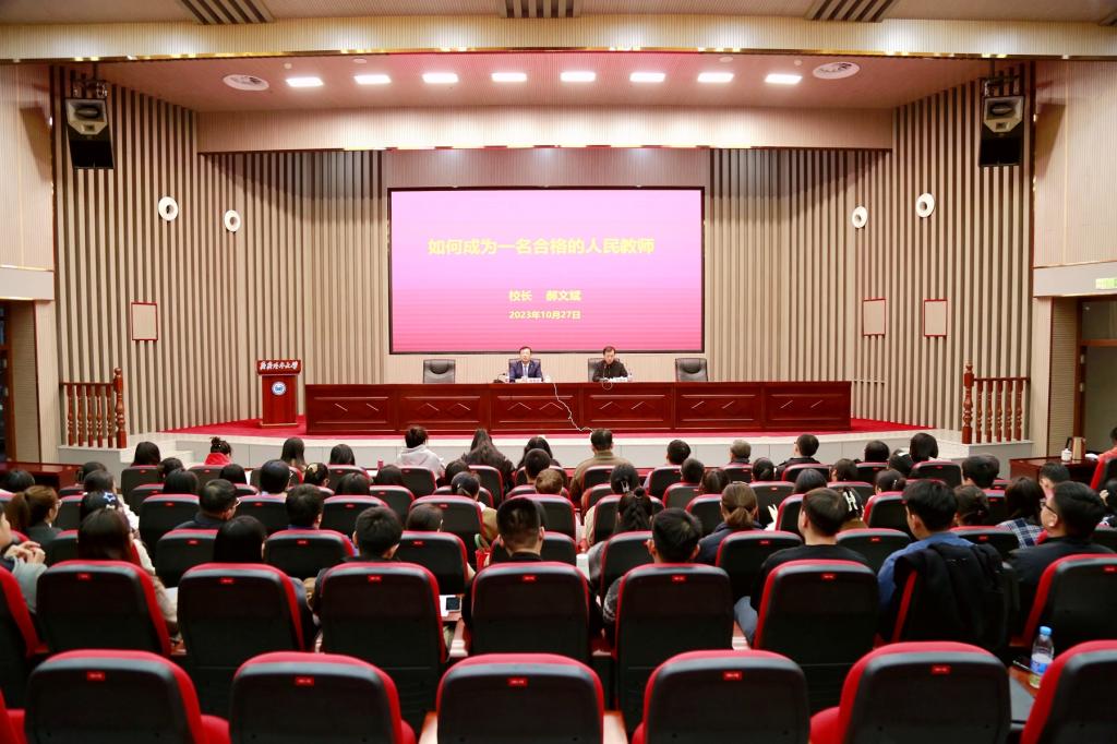 10月27日下午,2023年新進(jìn)教師入職培訓(xùn)第一講在學(xué)校日新大廈四樓報(bào)告廳舉行。校長(zhǎng)郝文斌以“如何成為一名合格的人民教師”為題為新入職教師做講座。2023年全體新入職教師參加了培訓(xùn),培訓(xùn)由副校長(zhǎng)李奇楠主持。