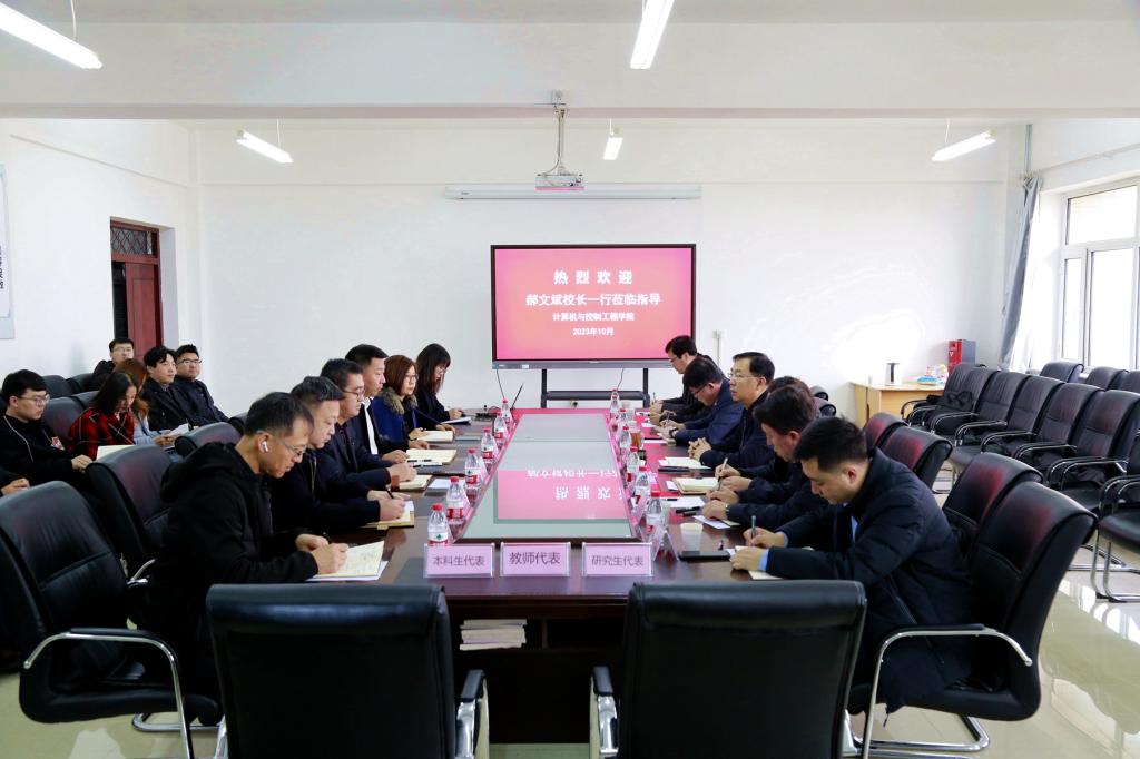 10月31日上午,校長、黨委副書記郝文斌在相關(guān)部門負責人陪同下,深入計算機與控制工程學院調(diào)研指導工作。計算機與控制工程學院班子成員、各系部(中心)主任、學科帶頭人、教師代表、研究生和本科生代表參加調(diào)研座談會。