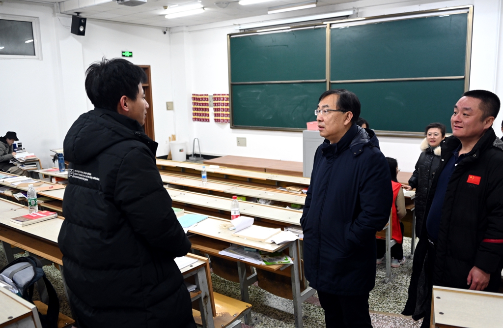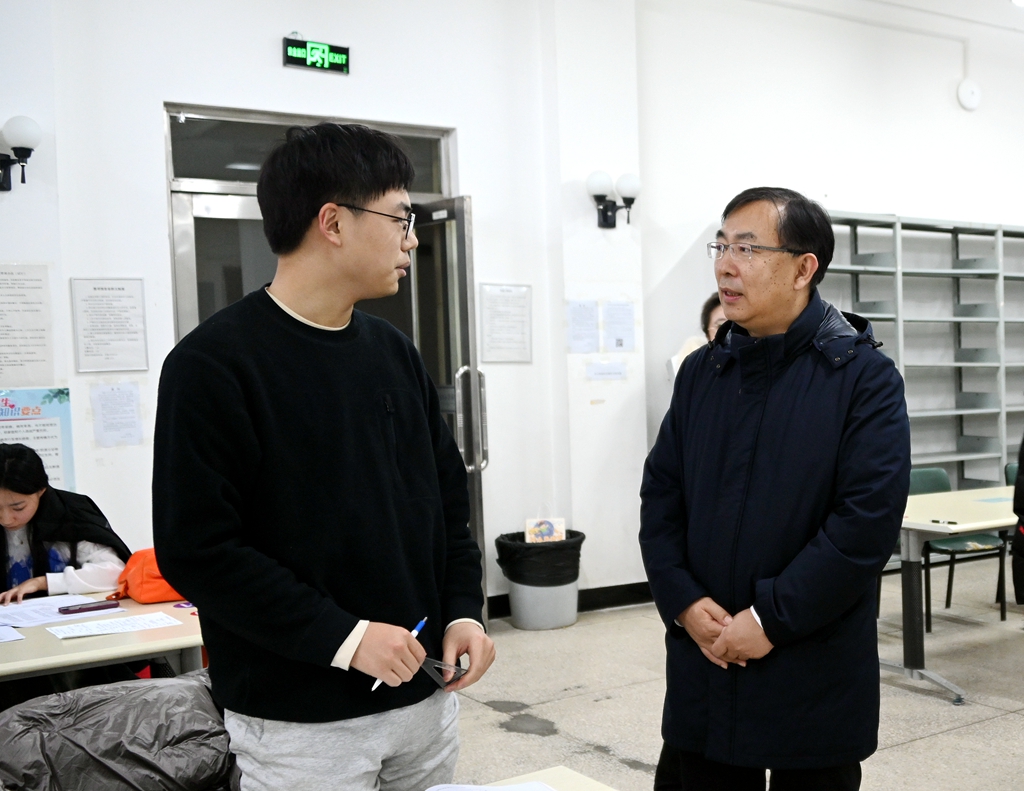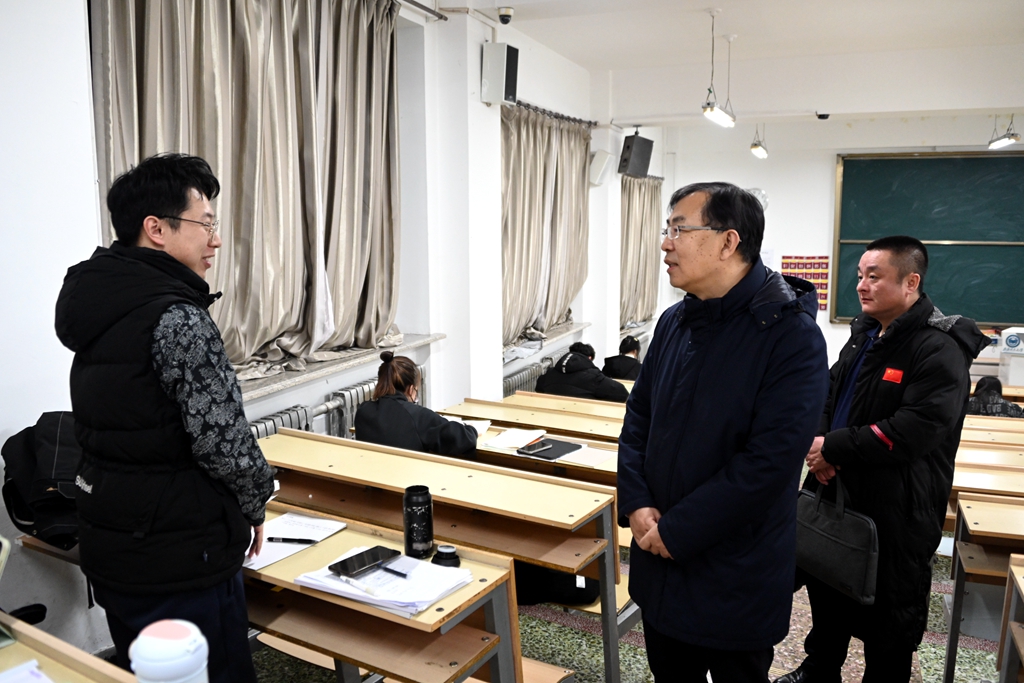 郝文斌詳細查看了考研自習室的學習環(huán)境,了解2024年考研學生備考保障情況。他指出,學校高度重視學生考研工作,關(guān)心關(guān)愛學生,要為考研學生做好服務(wù)保障工作,創(chuàng)設(shè)各種學習和生活便利條件,相關(guān)部門及各教學單位要采取有效舉措,加強就業(yè)指導(dǎo)和心理調(diào)適,正確處理好考研和就業(yè)創(chuàng)業(yè)關(guān)系,把考研作為大學生活的重要階段,以理性平和心態(tài)迎接2024年研究生考試。